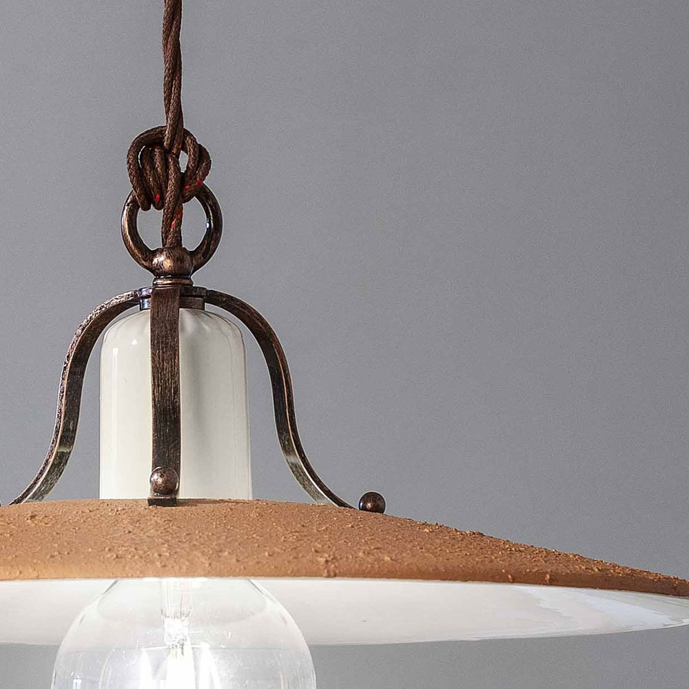 Nedhængt op og ned lampe i jern og håndlavet ru keramik, 2 størrelser lavet i Italien af Ferroluce.