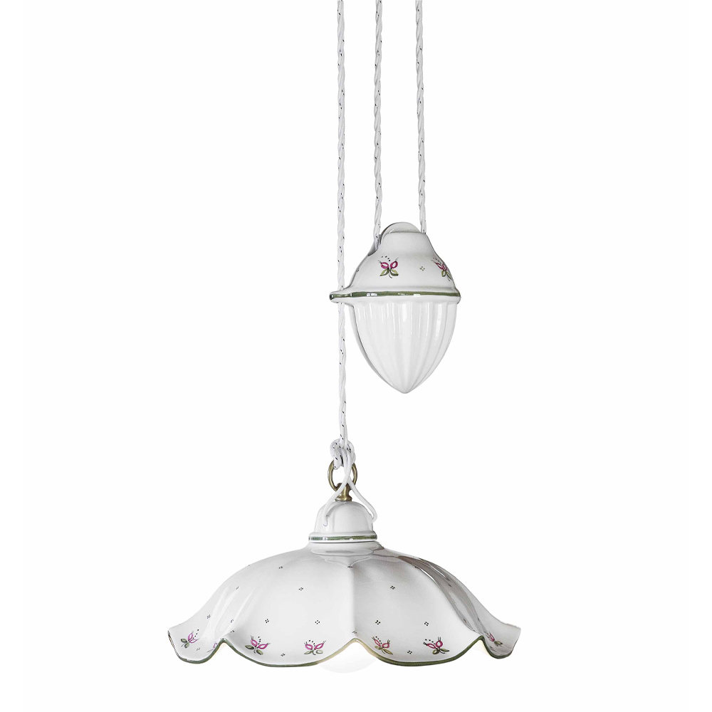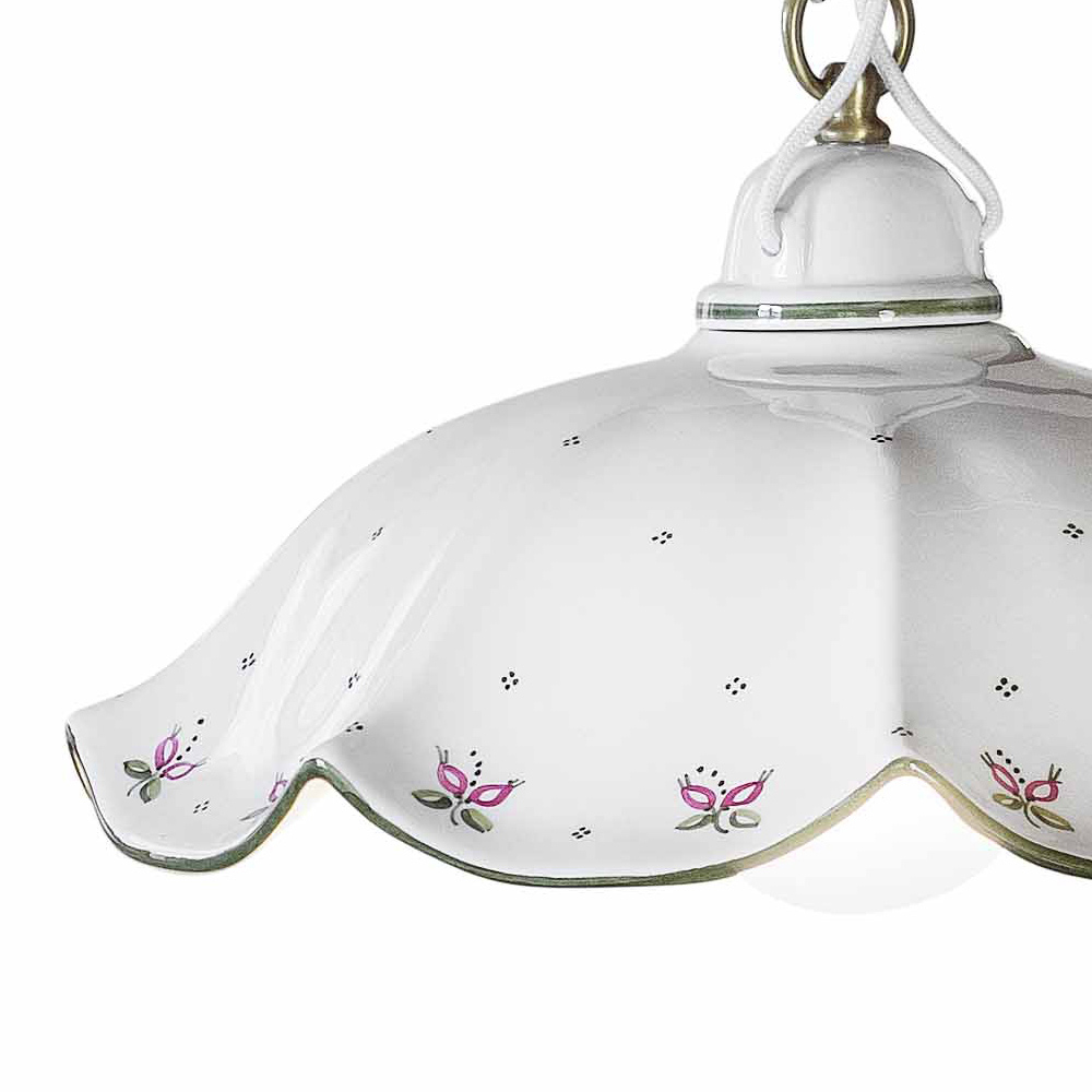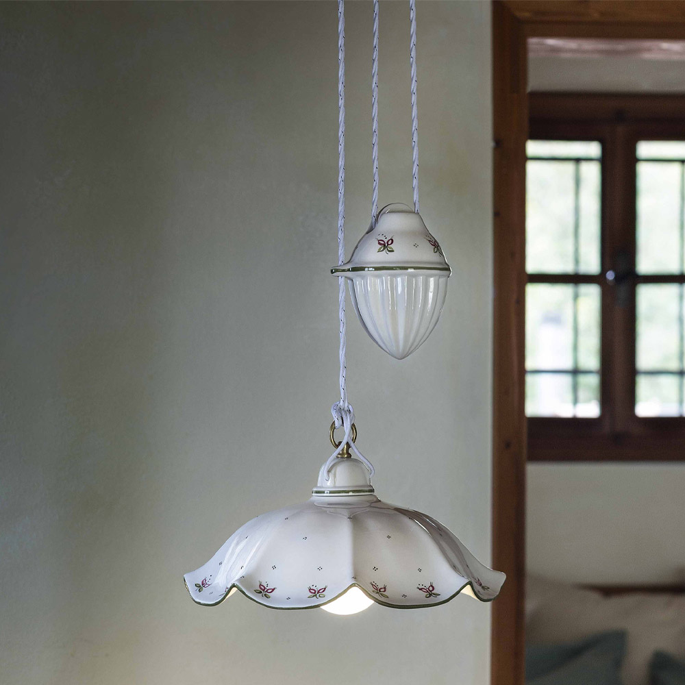 Pendellampe med håndmalet bølget keramik lavet i Italien af Ferroluce.