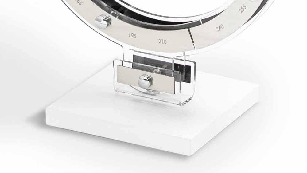Støtten er i methacrylat, er forkromet messing og MDF laccato.Possibilità tilt og rotation manuale.Il skæring og gravering udført med high-tech, edb instrumenter.