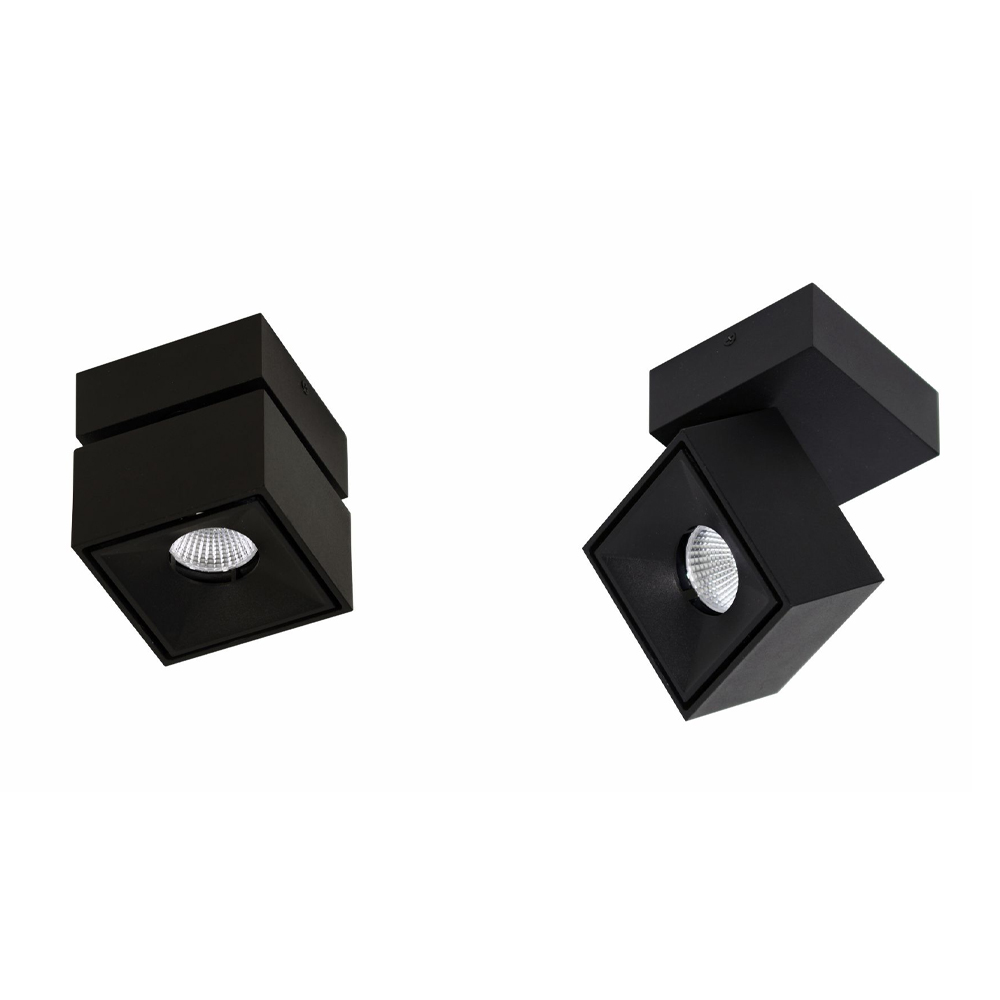 Firkantet loft- eller vægspot med hvid eller sort aluminiumsled.