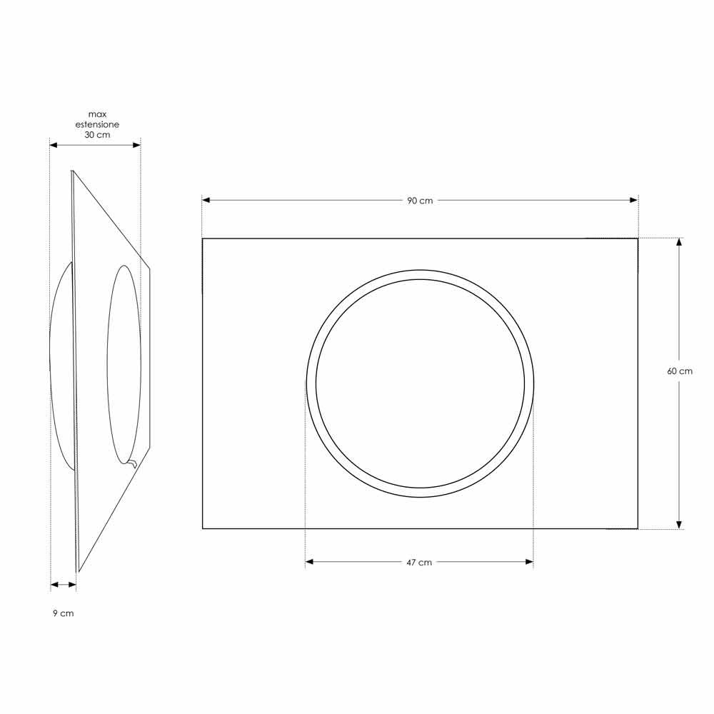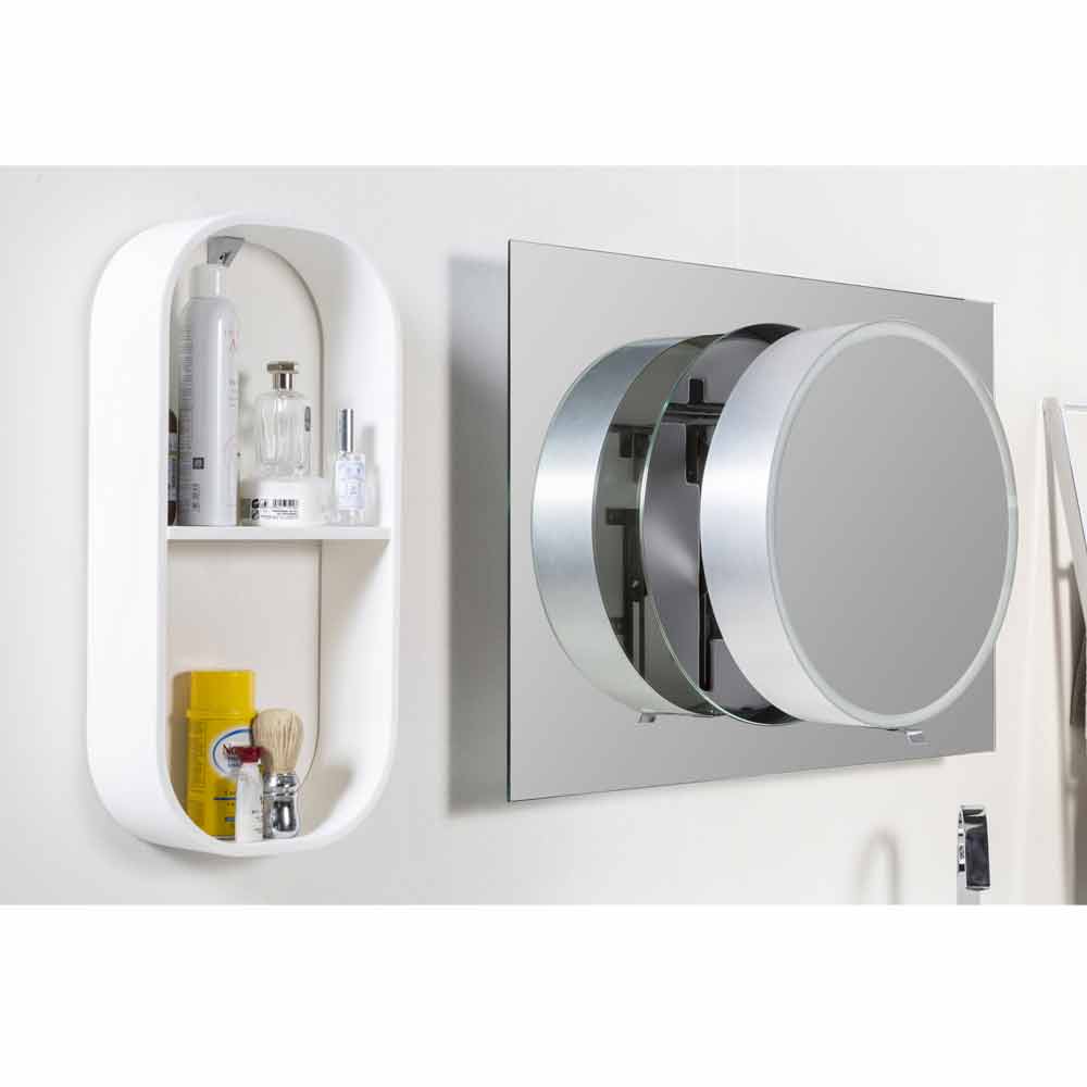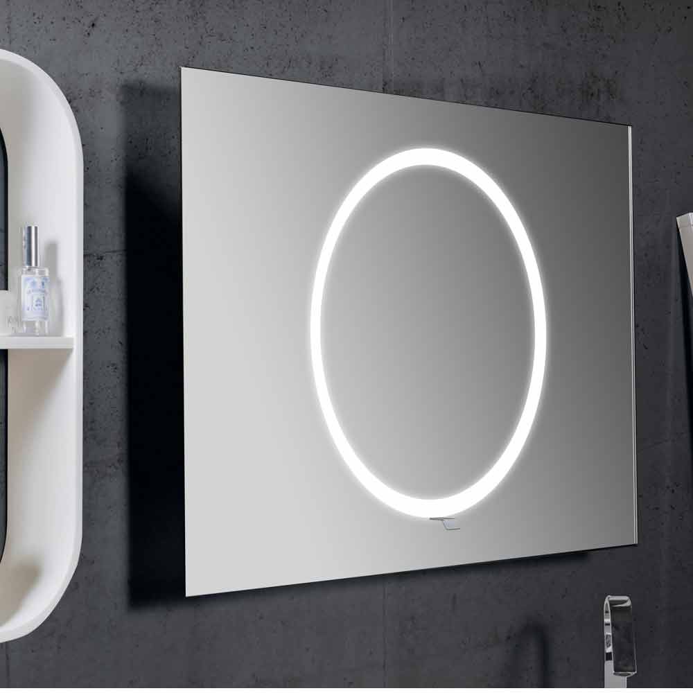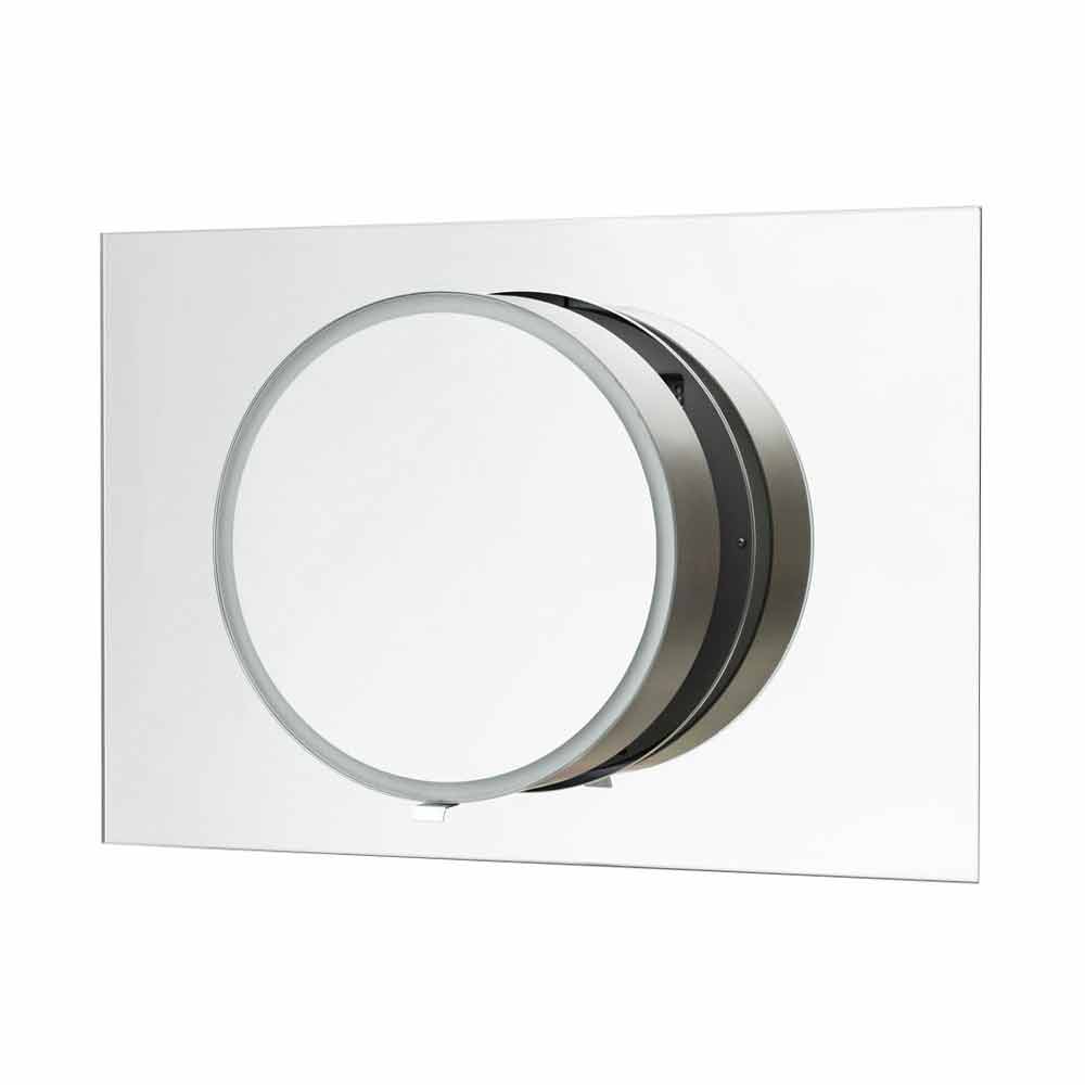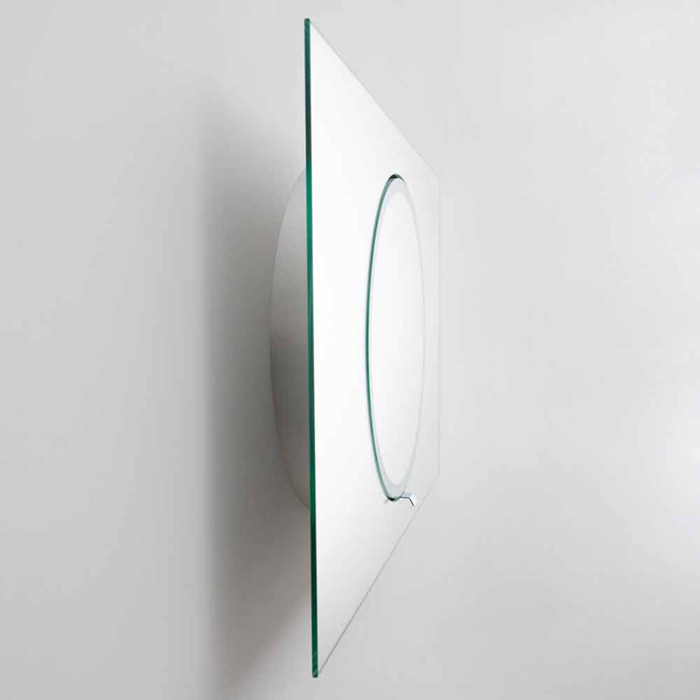 6 mm poleret kantspejl med indvendig cirkulær struktur, der kan belyses af LED og er selvbevægelig. Den cirkulære del bevæger sig mod brugeren med en simpel gestus, nærmer sig ansigtet og lyser op på omkredsen.