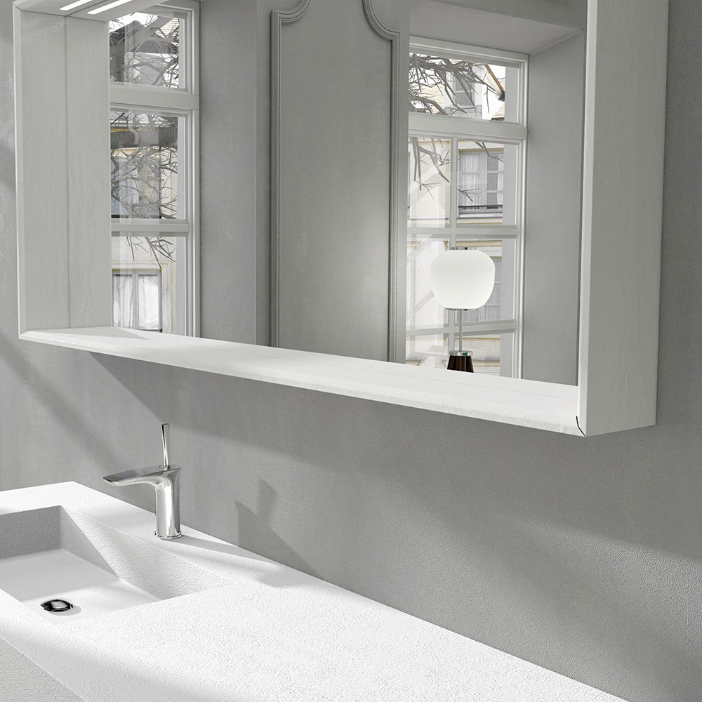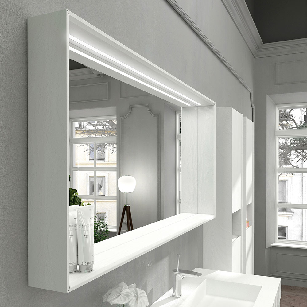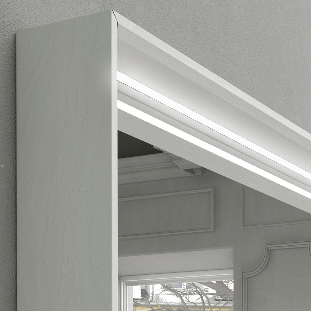 Rektangulært vægspejl til badeværelse med LED-lys og hvid trækant, luksus lavet i Italien.