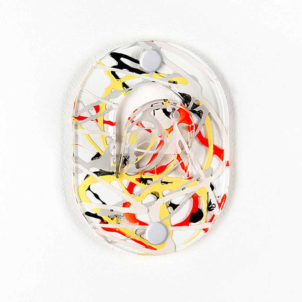 5 farvede vægbøjler i laserskåret plexiglas med klipdesign fremstillet i Italien.