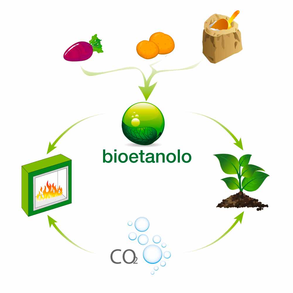 Bioethanol er en denatureret organisk ethylalkohol, der udvindes ved destillation af naturlig biomasse såsom majs, kartofler, sukkerroer osv. Det er en energikilde, der ikke udtømmes over tid, hvilket gør den til et naturligt, økonomisk og vedvarende brændstof.