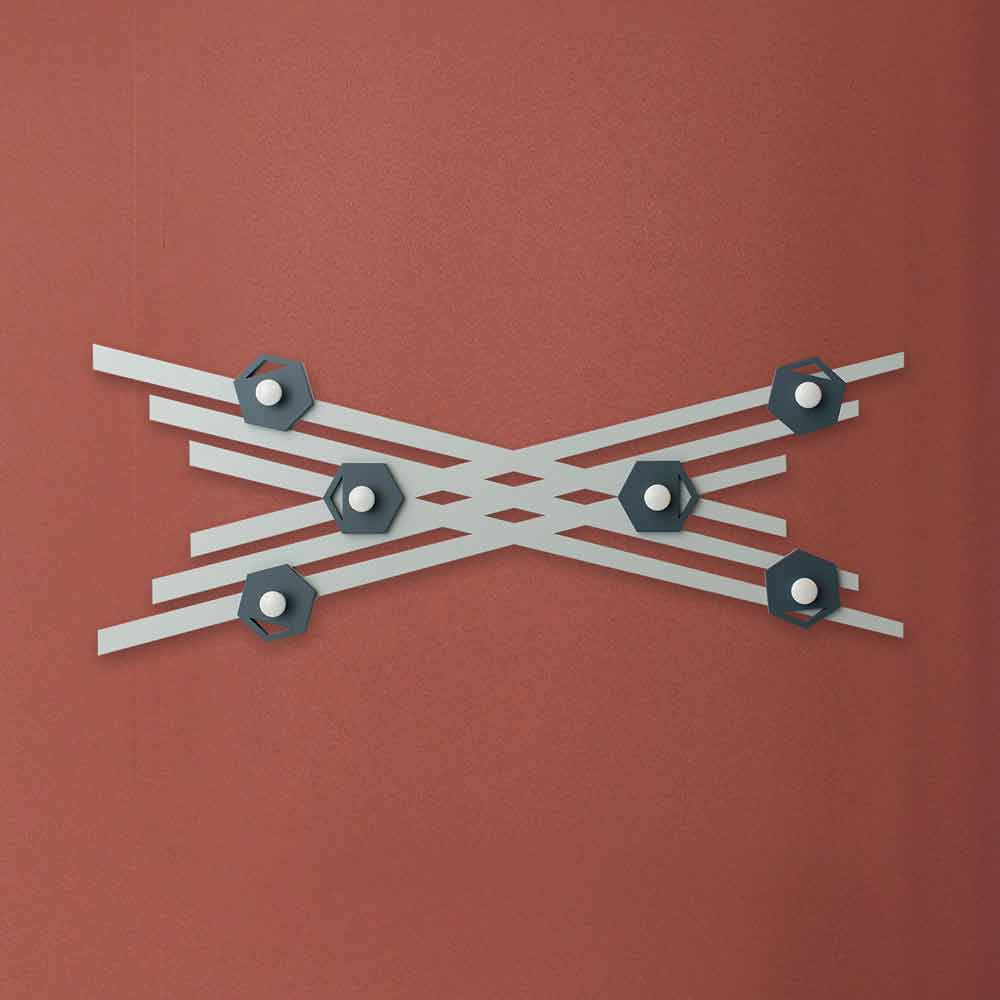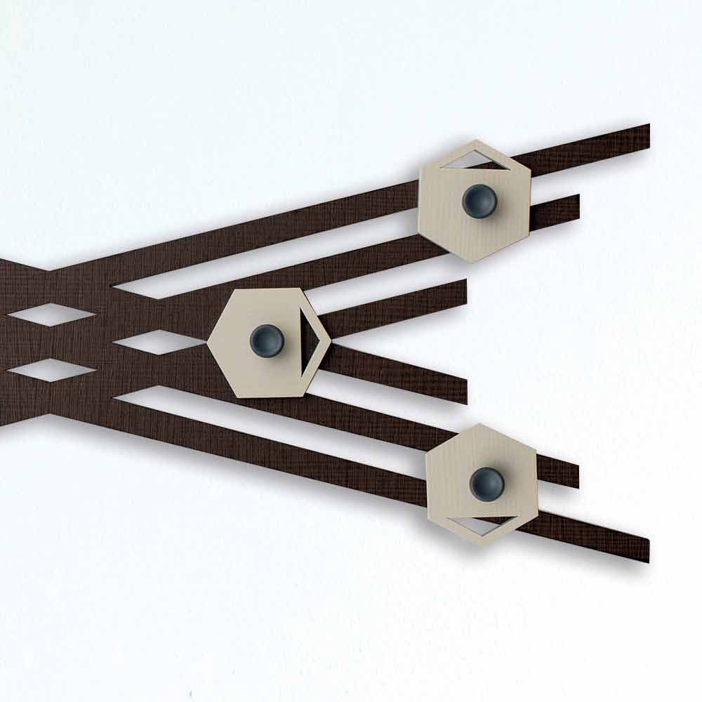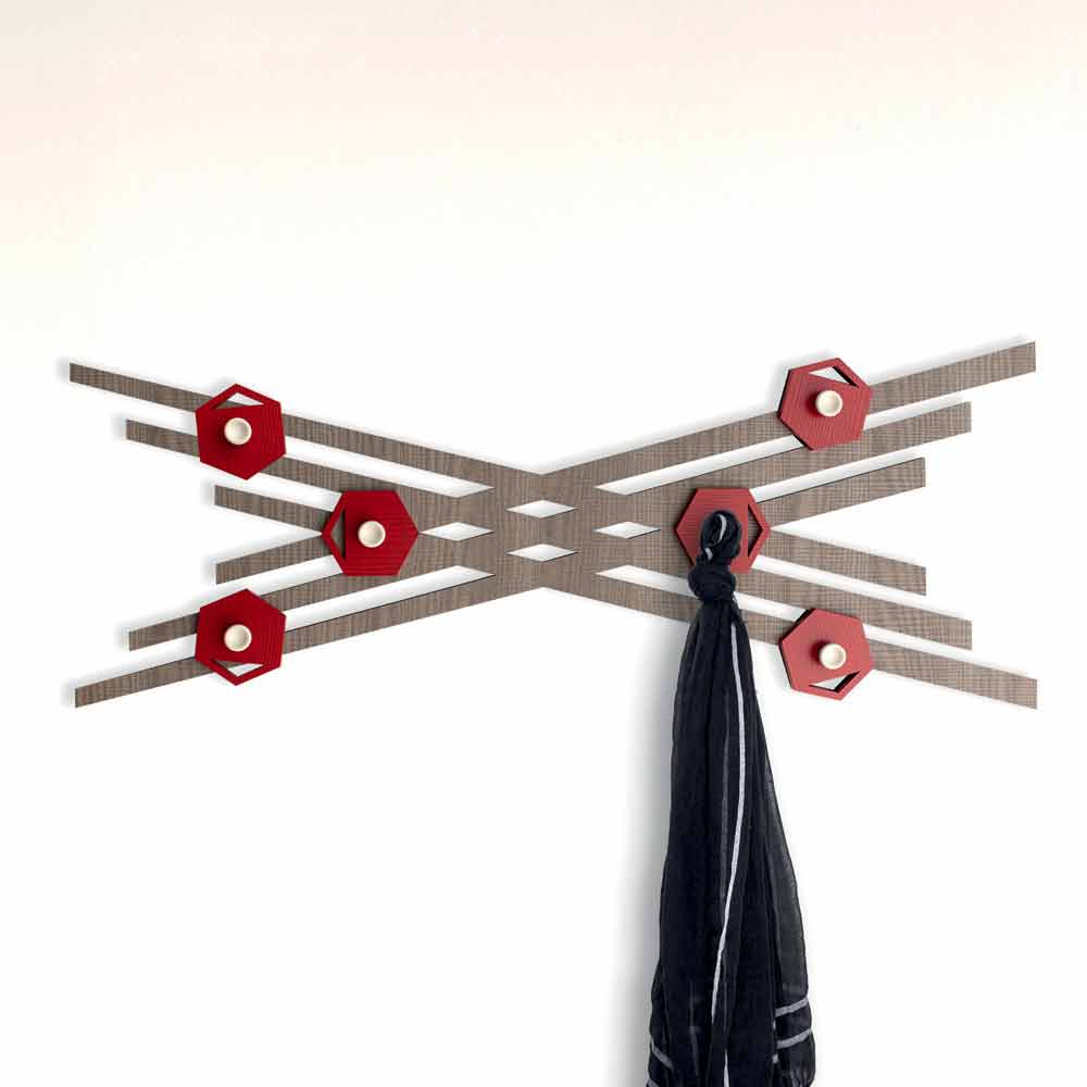 Vægmonteret indgangsfrakke stativ, moderne design i farvet træ, fremstillet i Italien.