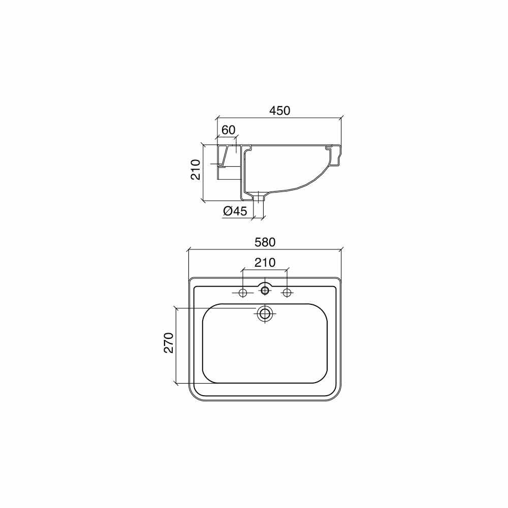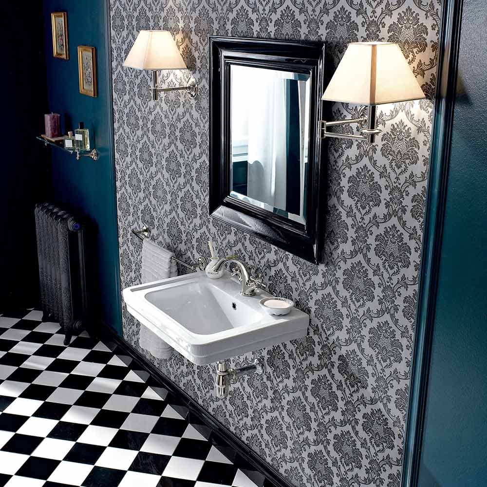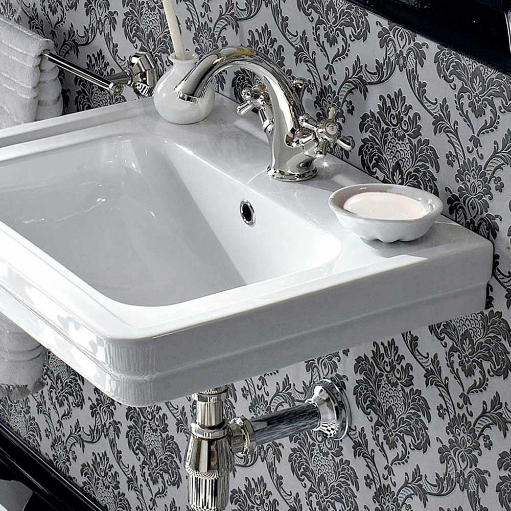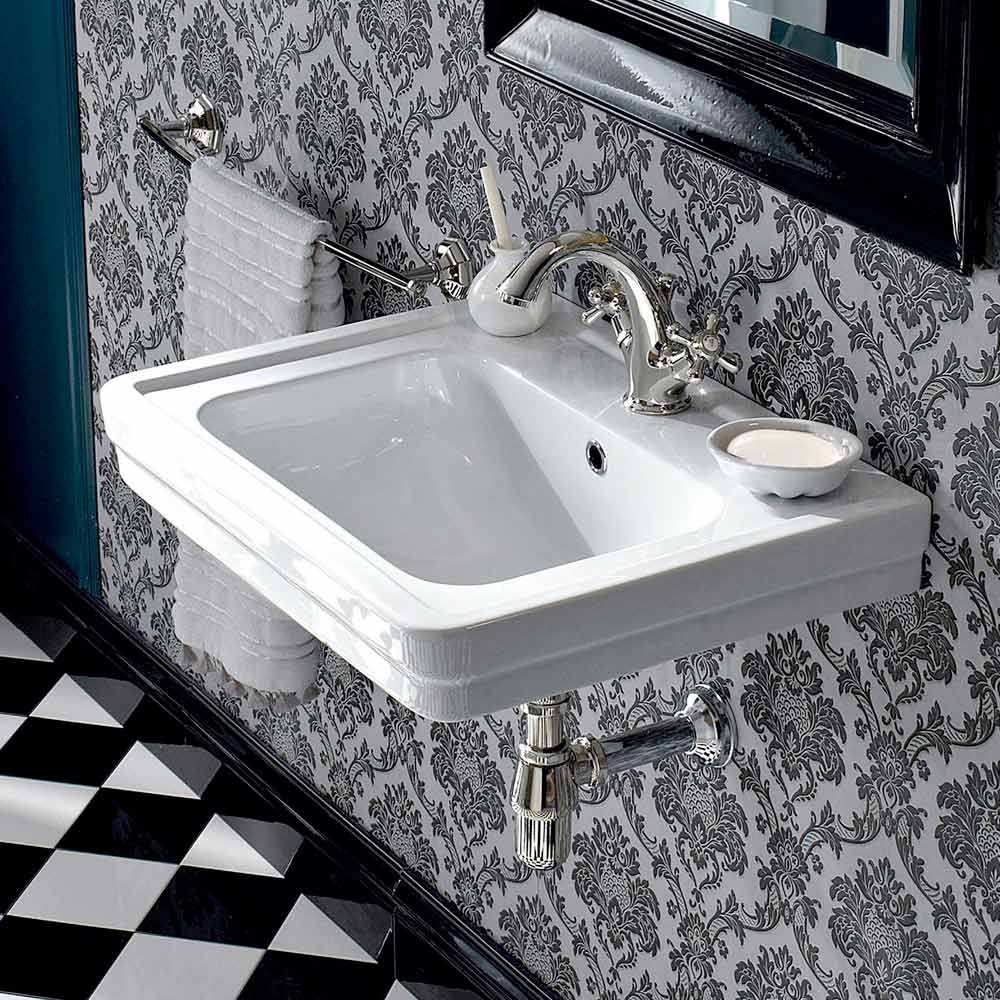 Hvid keramisk væg hængt håndvask i klassisk stil fremstillet i Italien, Marwa.