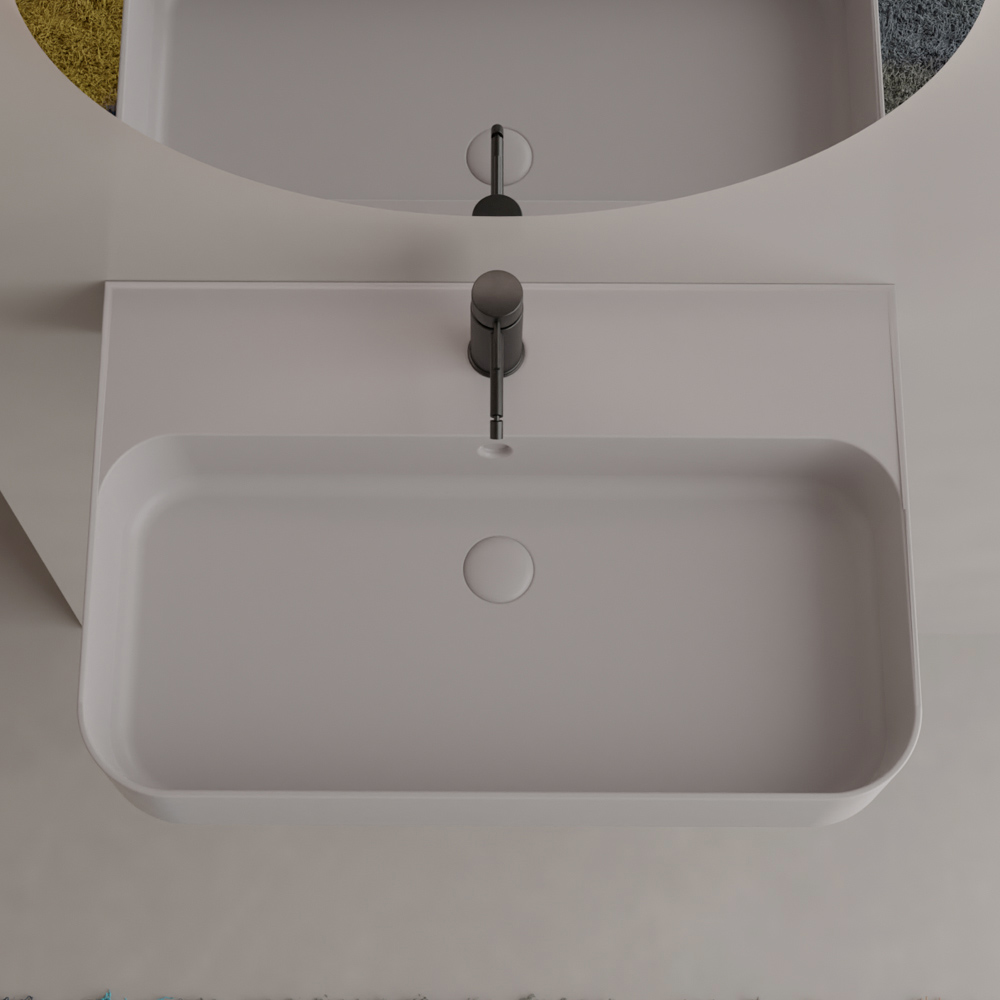 Farverne og den elegante rektangulære form udtrykker en enkel, men kraftfuld skønhed , der giver vasken et udseende, der er lige så praktisk, som det er æstetisk. Den højkvalitets keramik sikrer modstand og holdbarhed over tid og bevarer sit upåklagelige udseende med nem vedligeholdelse.