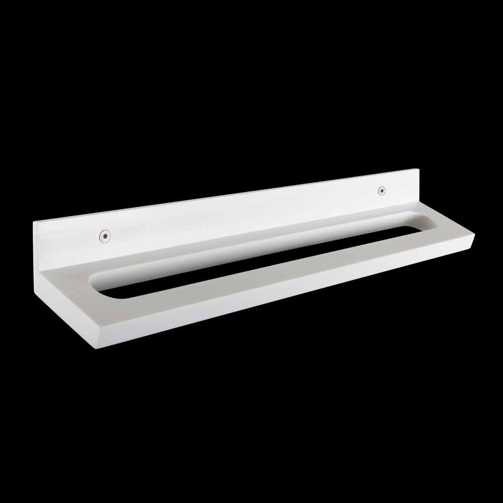Vægmonteret håndklædestang i hvid Corian med synlige skruer, fremstillet i Italien design.
