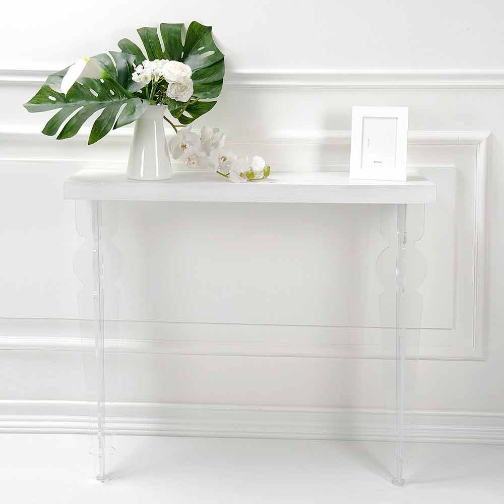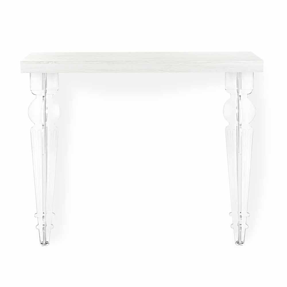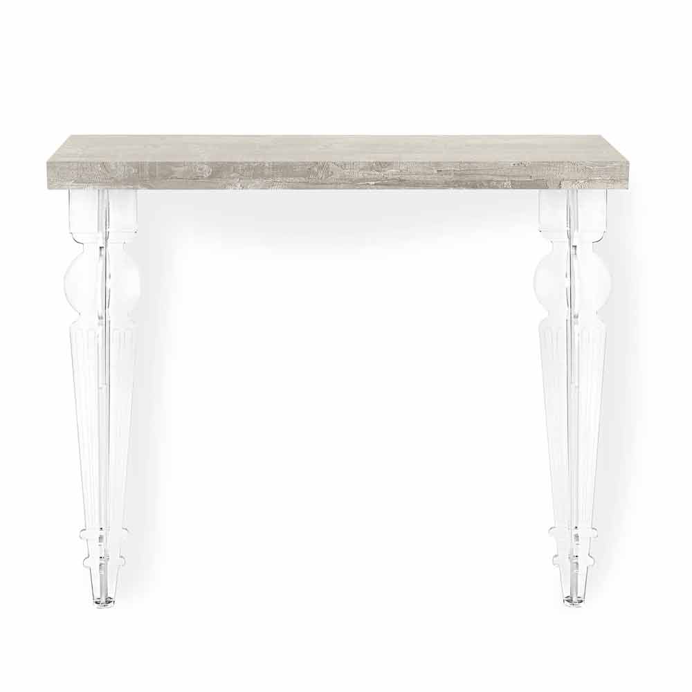 Vægkonsolbord i hvidt, gråt eller cortentræ med drejede ben i plexiglas, design fremstillet i Italien.