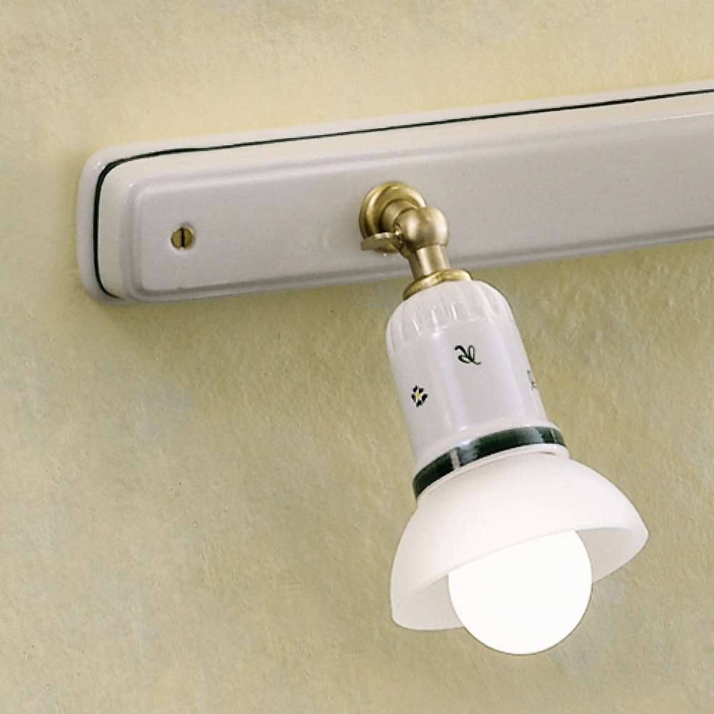 Lineær væglampe 2 eller 3 lys i messing og håndmalet keramik, lavet i Italien af Ferroluce.