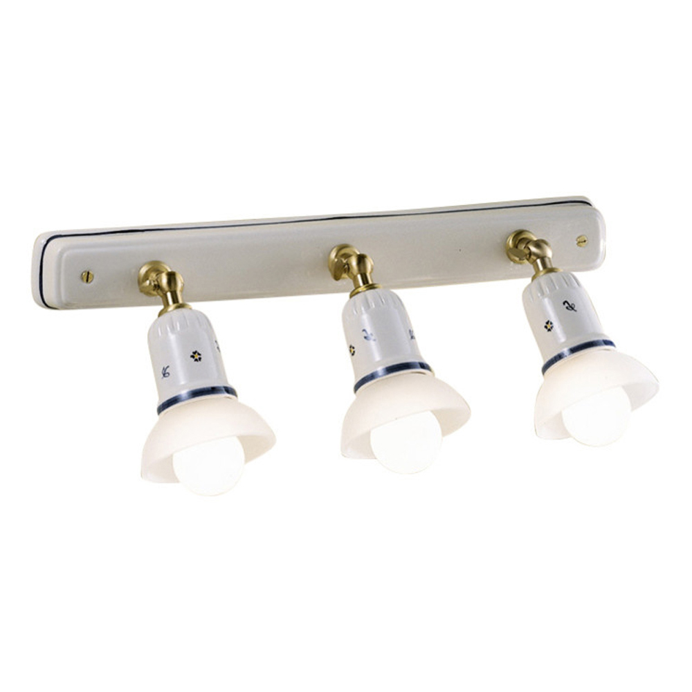 Denne applikation med 2 eller 3 spotlights med et lineært design er helt lavet i messing og keramik med håndmalet blomsterdekoration, at fremhæve håndværkernes dygtighed og manuelle færdigheder.