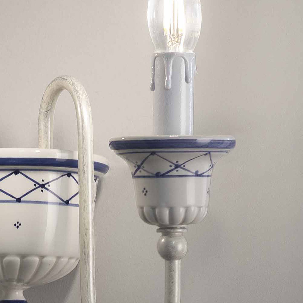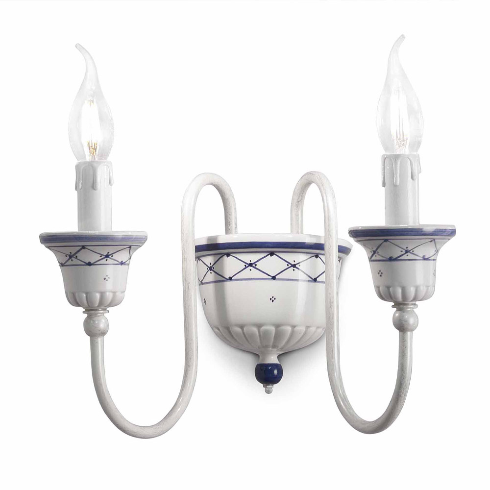Væglampe i messing og håndmalet keramik, 2 lys lavet i Italien af Ferroluce.