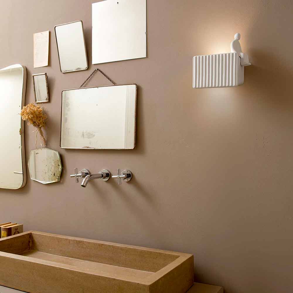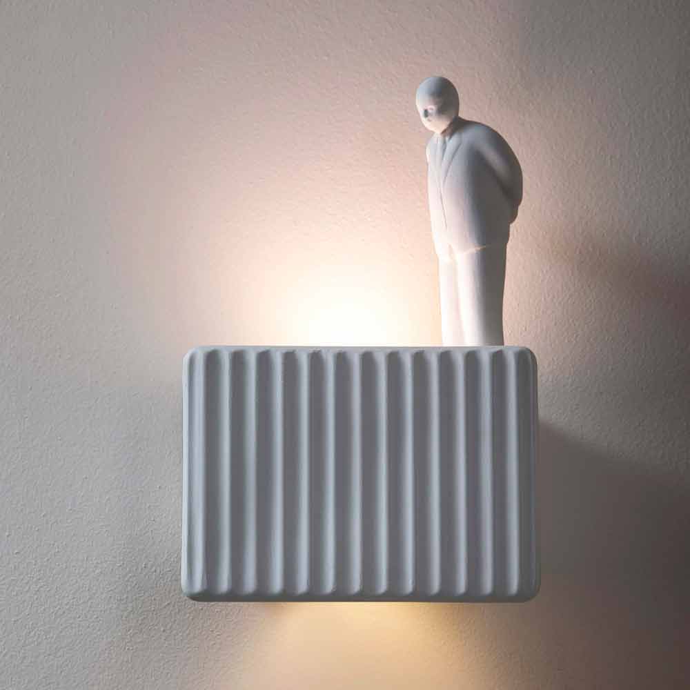 Denne originale og enestående væglampe repræsenterer den bevægelse, der i de senere år har haft et vellykket mediefænomen , og som ser umarellen eller den typiske ældre pensionist, der ser på byggepladser eller offentlige arbejder, som hovedpersonen. Det er et koncept, der ironisk nok blev levende i Italien og derefter spredte sig til resten af verden for at stimulere og forbedre produktionen for alle kontorarbejdere og computerarbejdere.