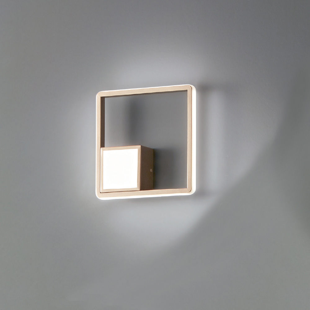 firkantede linjer , udtænkt og designet til at oplyse og indrette boligrum såsom indgange, korridorer, soveværelser, opholdsrum eller køkkener på en eksklusiv og elegant måde. Den raffinerede gyldne finish understreger det