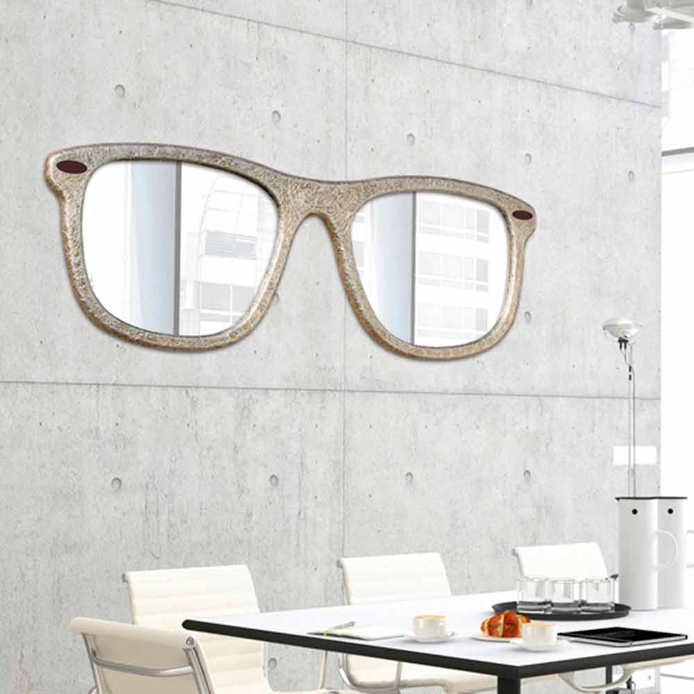 Vægmonteret møbelspejl i form af hånddekorerede briller