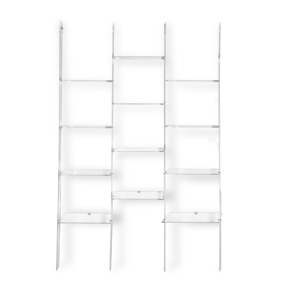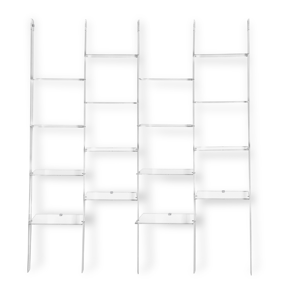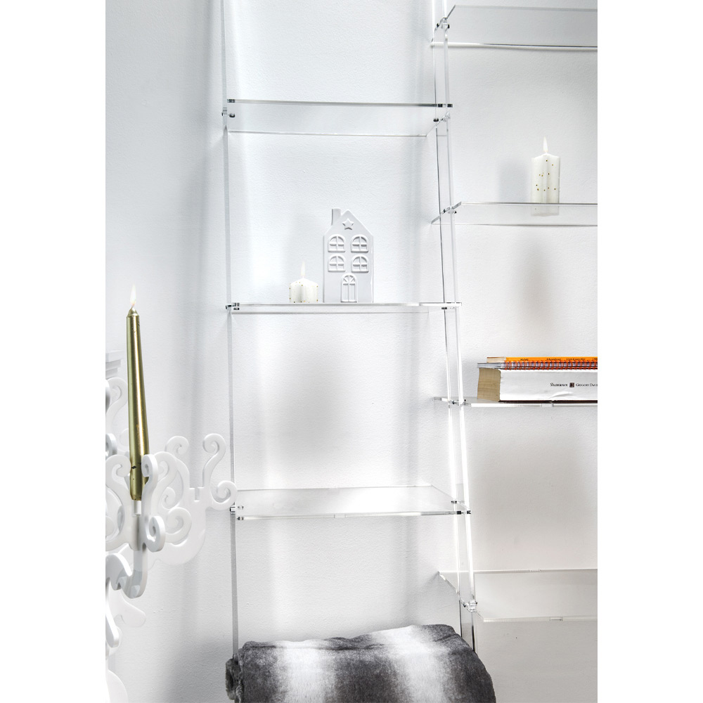 Stigeformet vægreol med op til 4 elementer i transparent plexiglas fremstillet i Italien.
