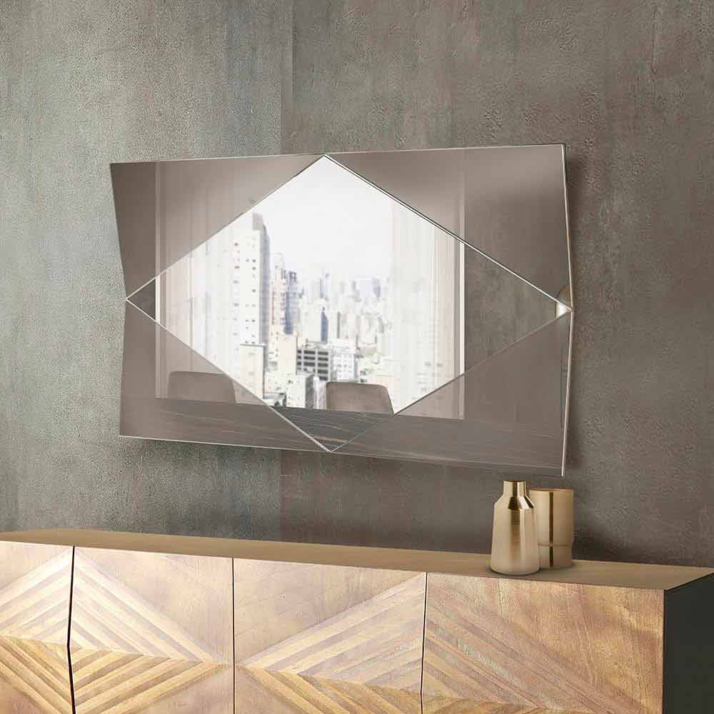 Vægspejl med bronze eller røget spejlet hjørne Lavet i Italien.