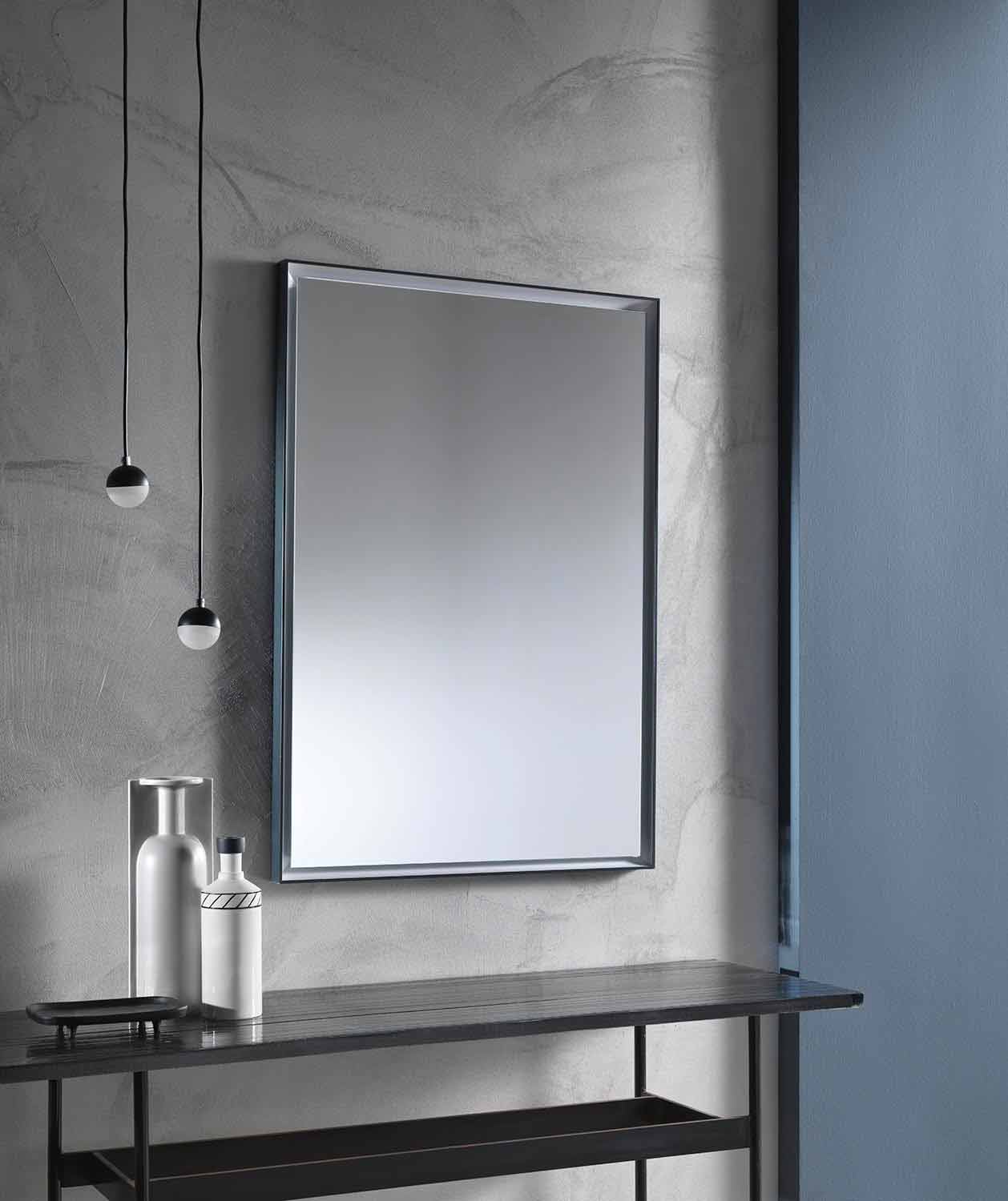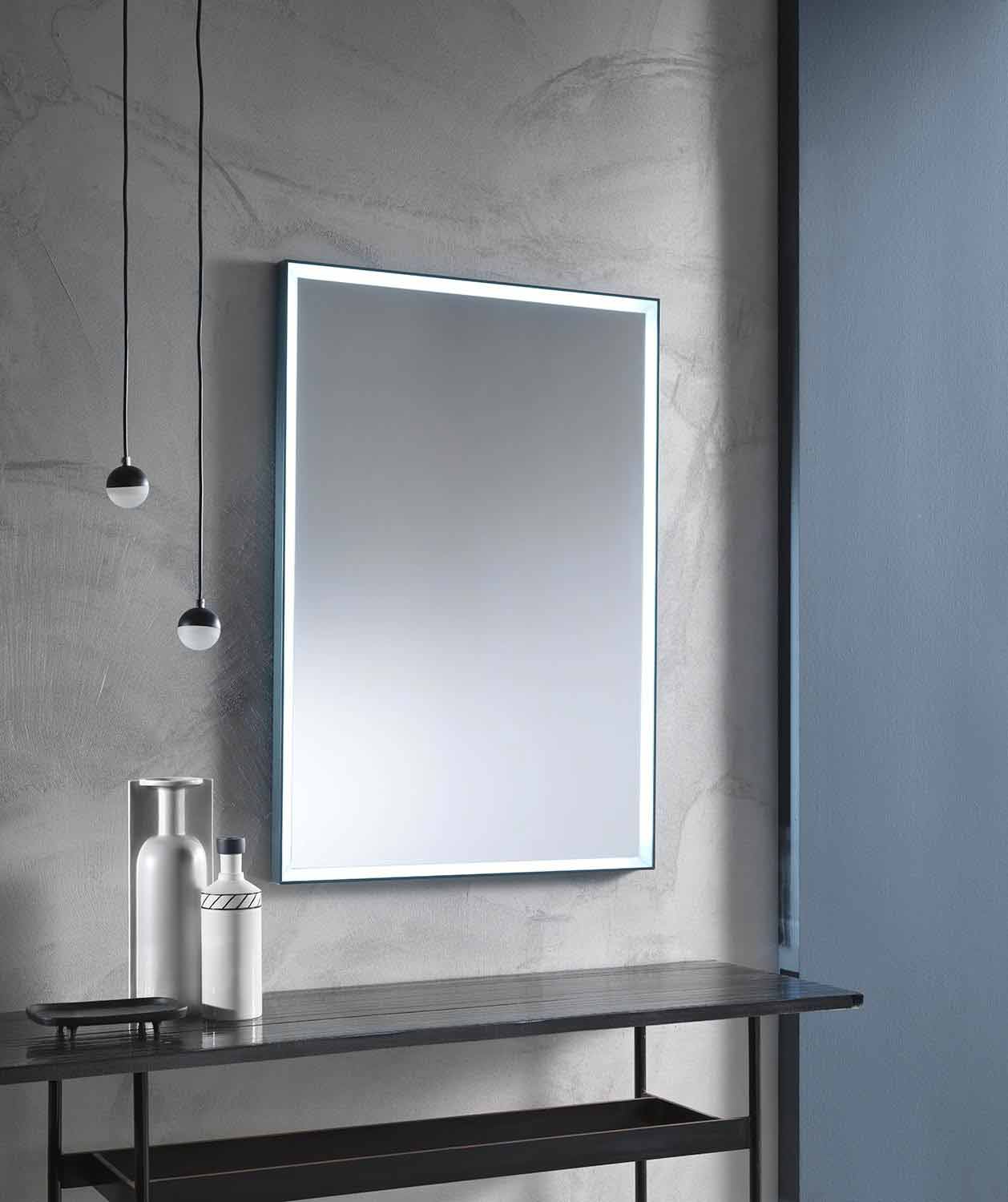 Moderne rektangulært design vægspejl med aluminiumsramme og LED -lys Fremstillet i Italien.