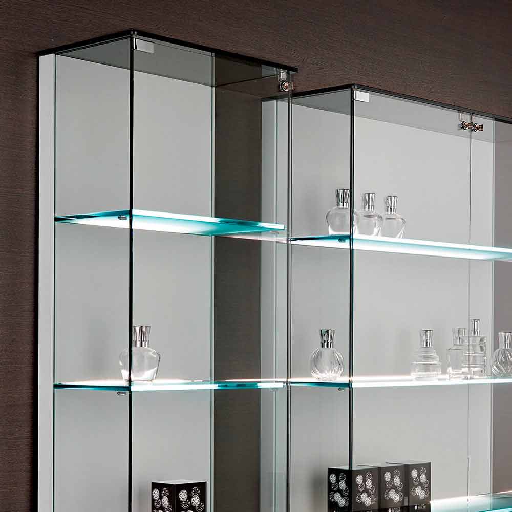 Dens elegance frigives maksimalt gennem syreætsede glashylder, der er oplyst med LED-lys med en maksimal kapacitet på 7,5 kg hver.