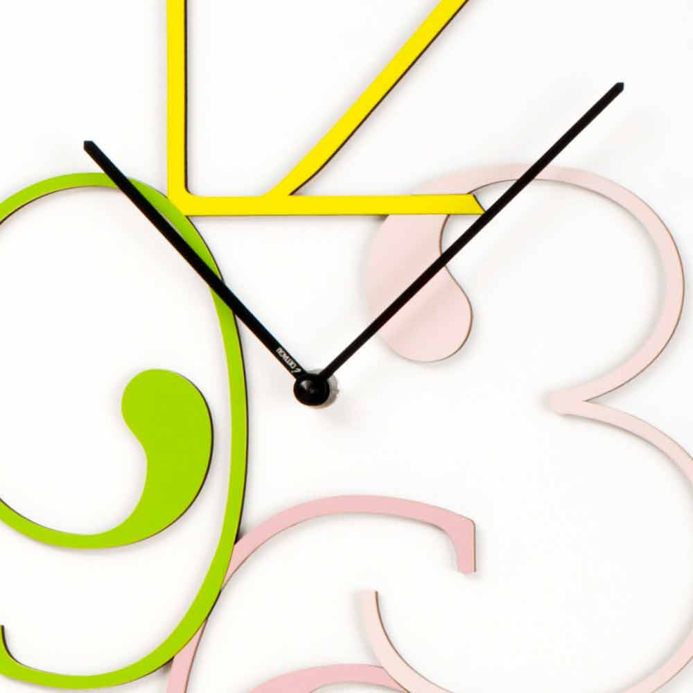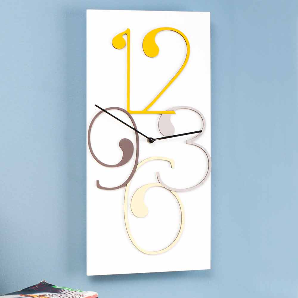 Vægur i uigennemsigtigt hvidt træ med farvede tal, to versioner af rektangulært og moderne design lavet i Italien.
