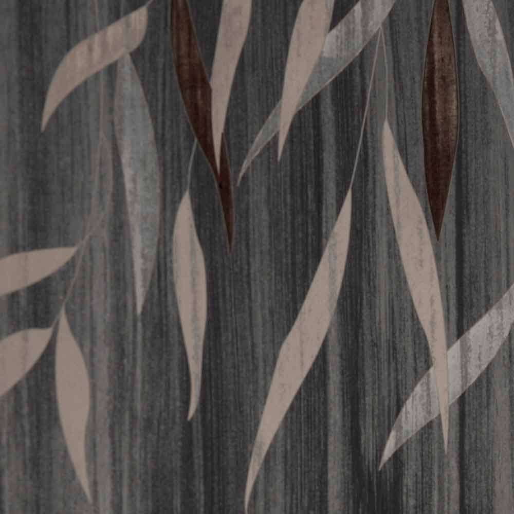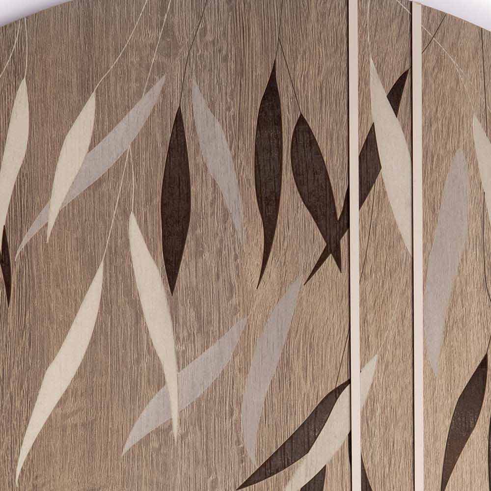 lakeret træ dekorationer, der skildrer pileblade i forskellige nuancer.