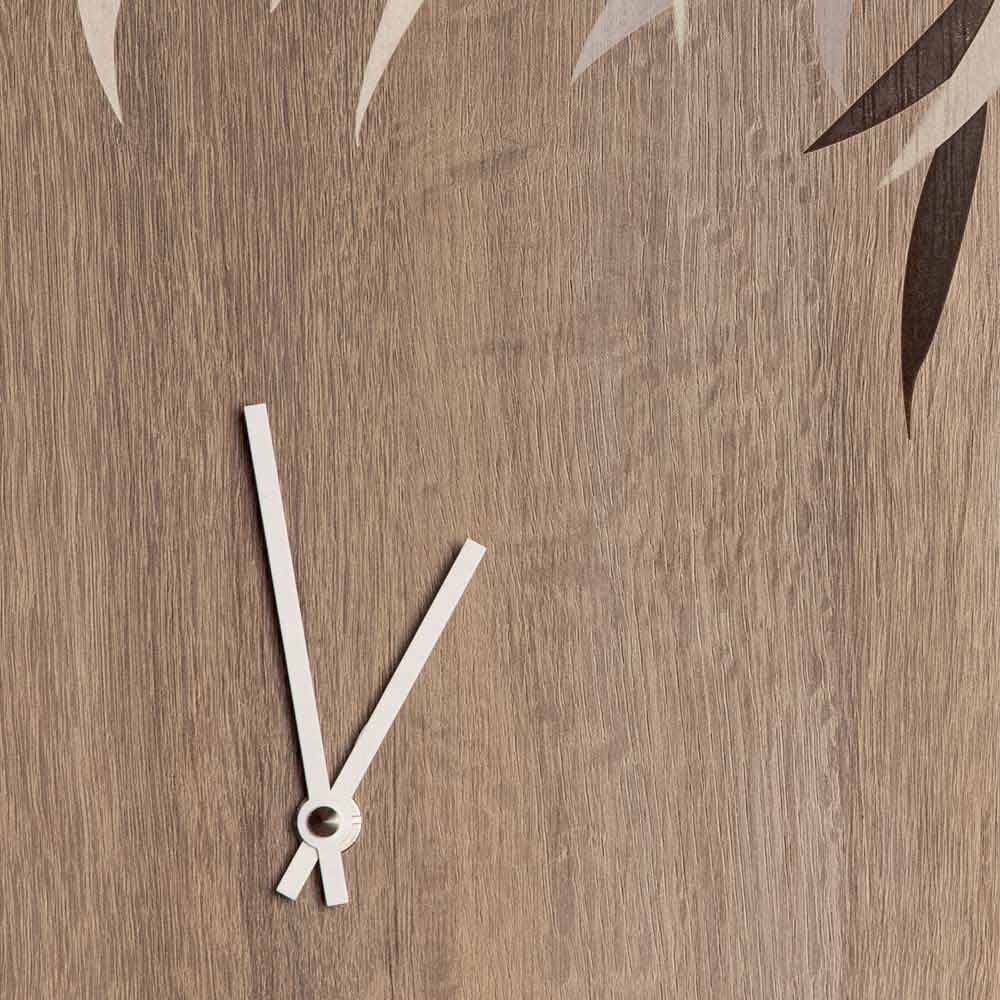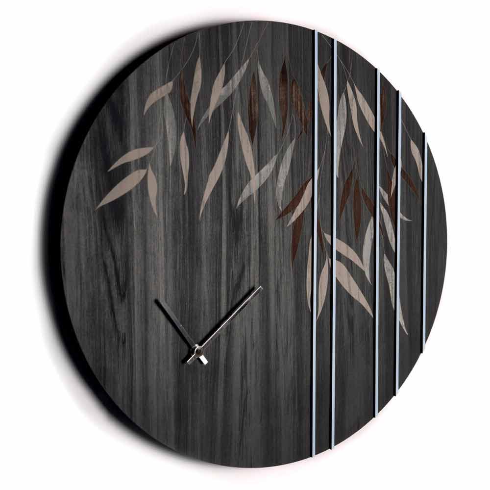 Rundt trævægur med lasergravering og lakeret træ dekorationer, lavet i Italien design.