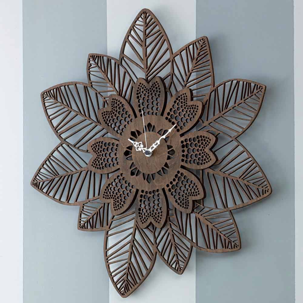 Moderne vægur, design i lyst træ eller wengè, blomsterform lavet i Italien.