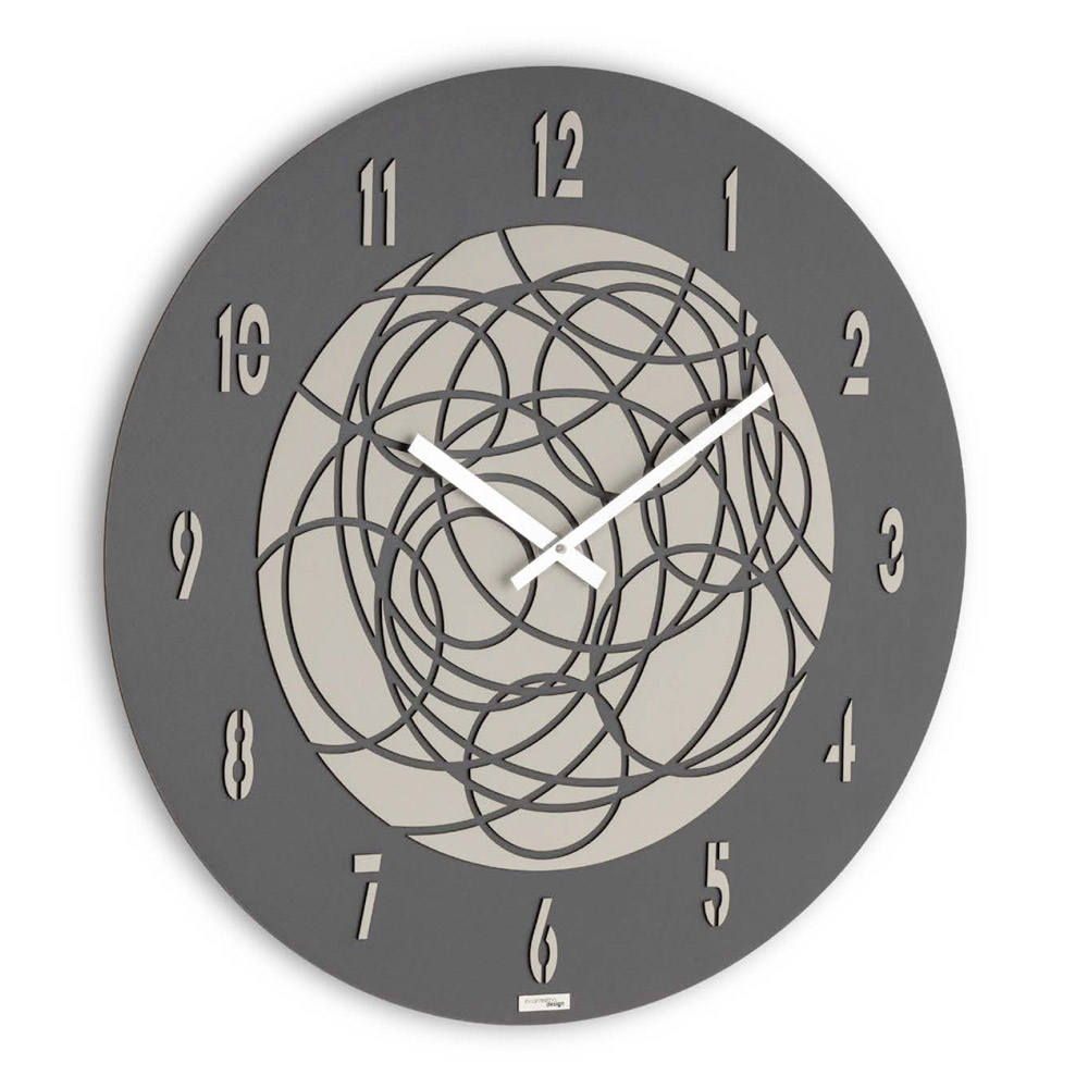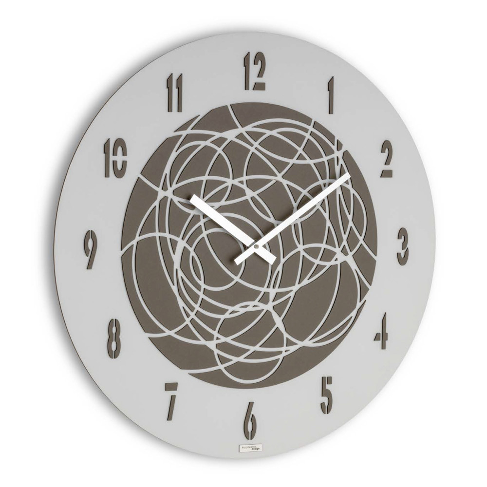 Dette vægur fanger øjet og fantasien og blander geometrisk mystik med hverdagens praktiske funktioner. Urskiven har et indviklet design af sammenflettede cirkler, der fremkalder kompleksiteten af konstellationer eller en elegant mandala .