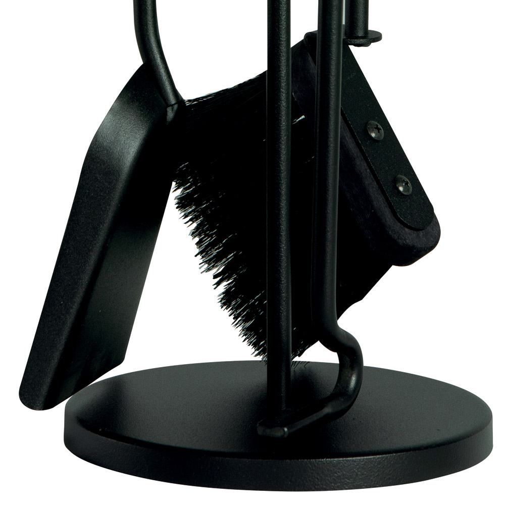 Det slanke, men holdbare stel rummer yndefuldt 3 tilbehør, alle med robuste håndtag, der sikrer nem håndtering og holdbarhed . Det kompakte design gør, at du kan placere sættet ved siden af pejsen uden at optage plads, mens den runde base sikrer stabilitet og orden.
