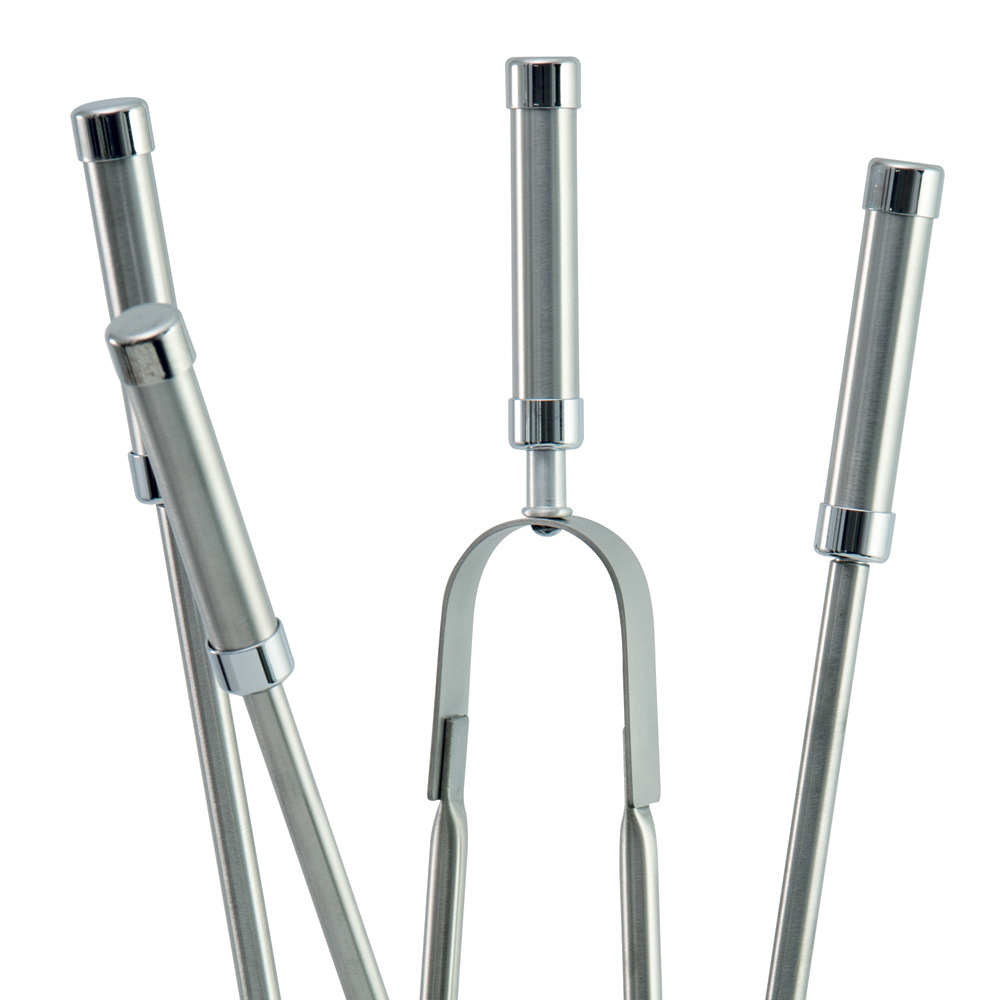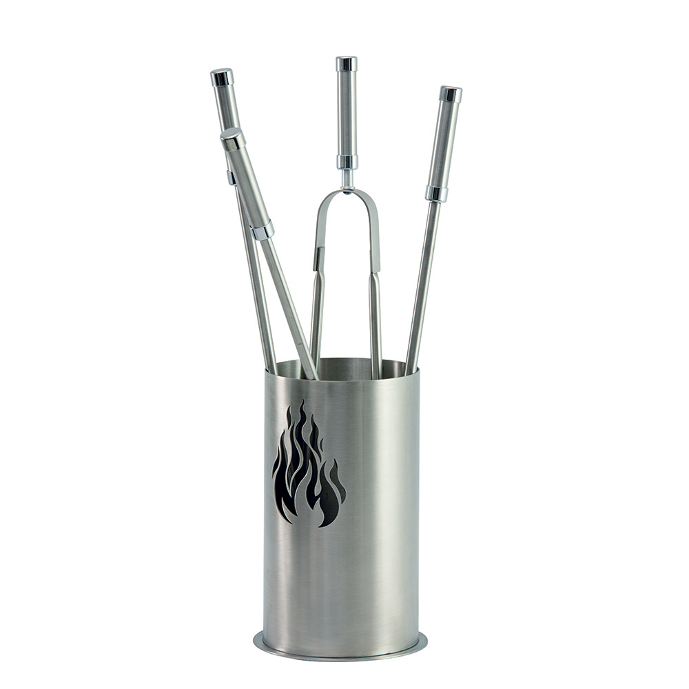 Denne pejsværktøjsholder, lavet af rustfrit stål af høj kvalitet, er et must-have for alle, der ønsker at kombinere funktionalitet og elegance. Dets moderne design, kendetegnet ved rene linjer og en iøjnefaldende flammeformet udskæring , gør den til et ægte kunstobjekt, perfekt til at tilføje et strejf af modernitet til det traditionelle ildritual.