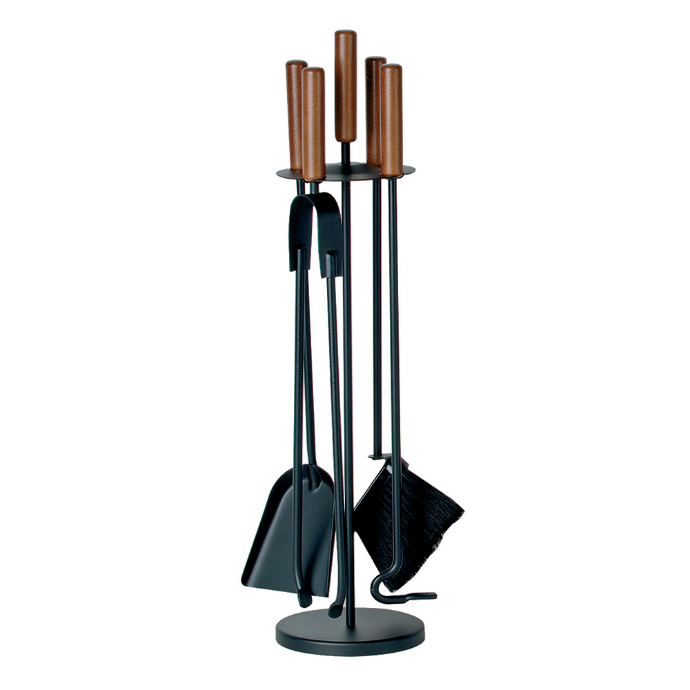 Dette sæt pejseværktøjer kombinerer elegancen af klassisk design med den essentielle funktionalitet til pleje af hjemmet. Den sorte metalstruktur, understøttet af en solid cirkulær base, er designet til stabilitet og holdbarhed. Træaccenter på værktøjshåndtagene tilføjer et strejf af naturlig varme, der står i flot kontrast til den matte metalfinish og giver sættet et hyggeligt, raffineret look.