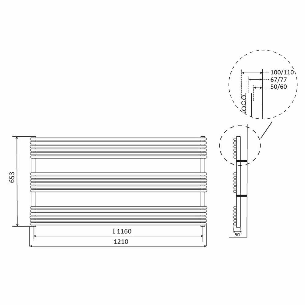 Denne håndklædevarmer har et meget praktisk og funktionelt vandret design lavet med vandrette runde rør, der let kan tilpasses til enhver form for stil og miljø.