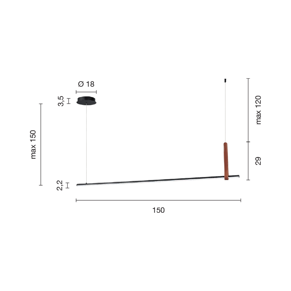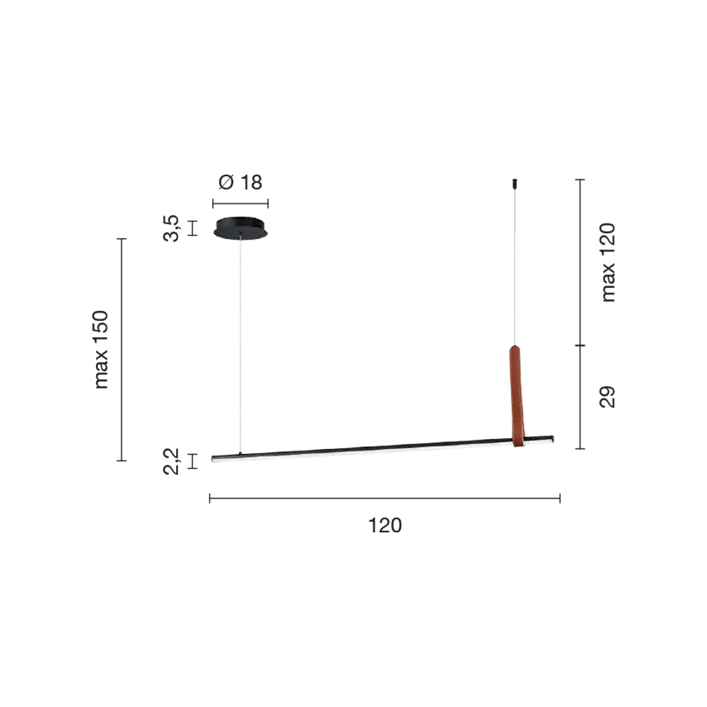 - kabel justerbar i længden op til 150 cm