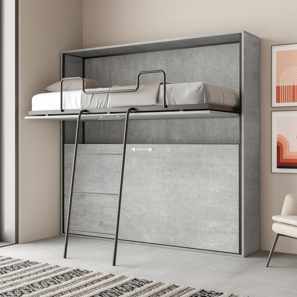 Sammenklappelig køjeseng lavet med spånplader. Fremstillet i Italien.