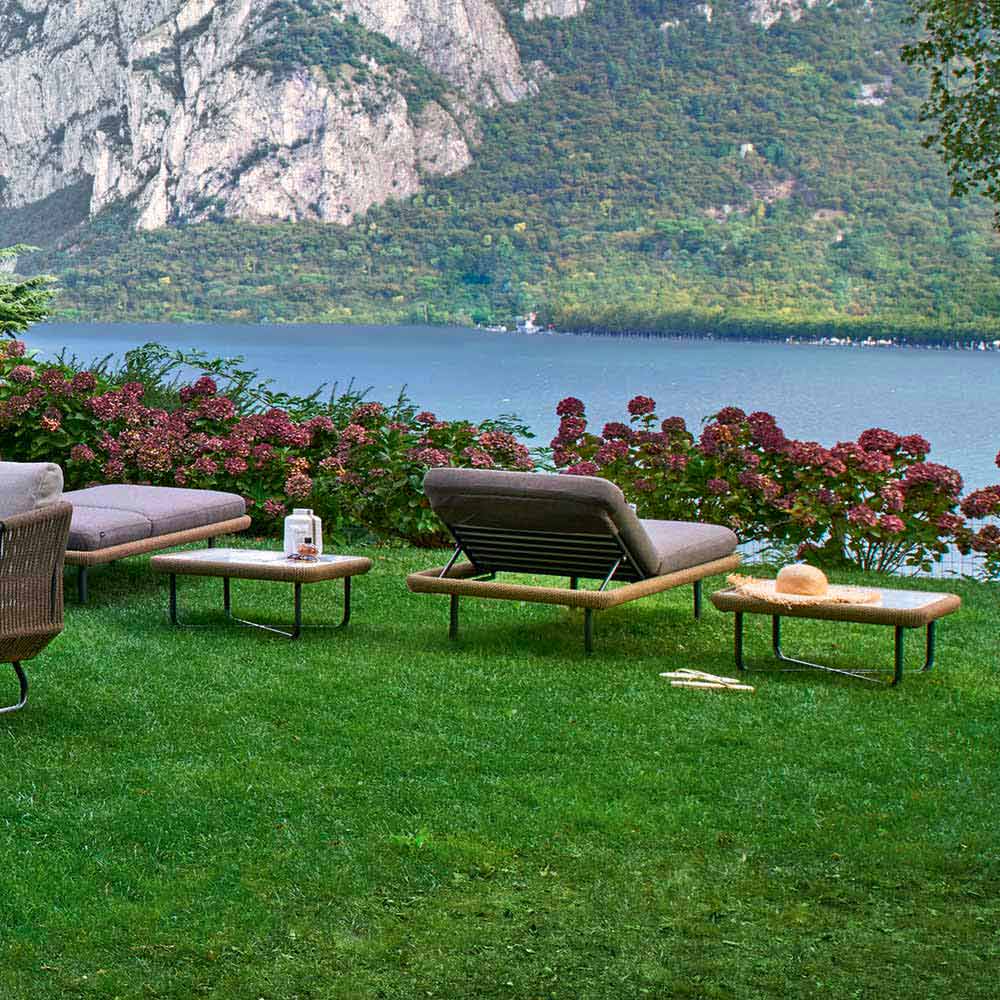 Babylon er en samling sæder bestående af en sofa, en lænestol, en seng og en pouf. Alle varer i denne samling er registrerede modeller og har en malet aluminiumsstruktur og et syntetisk fiberværk. Denne udendørs solstole, takket være sit alsidige design, kan også bruges til indendørs miljøer. Puderne er aftagelige.