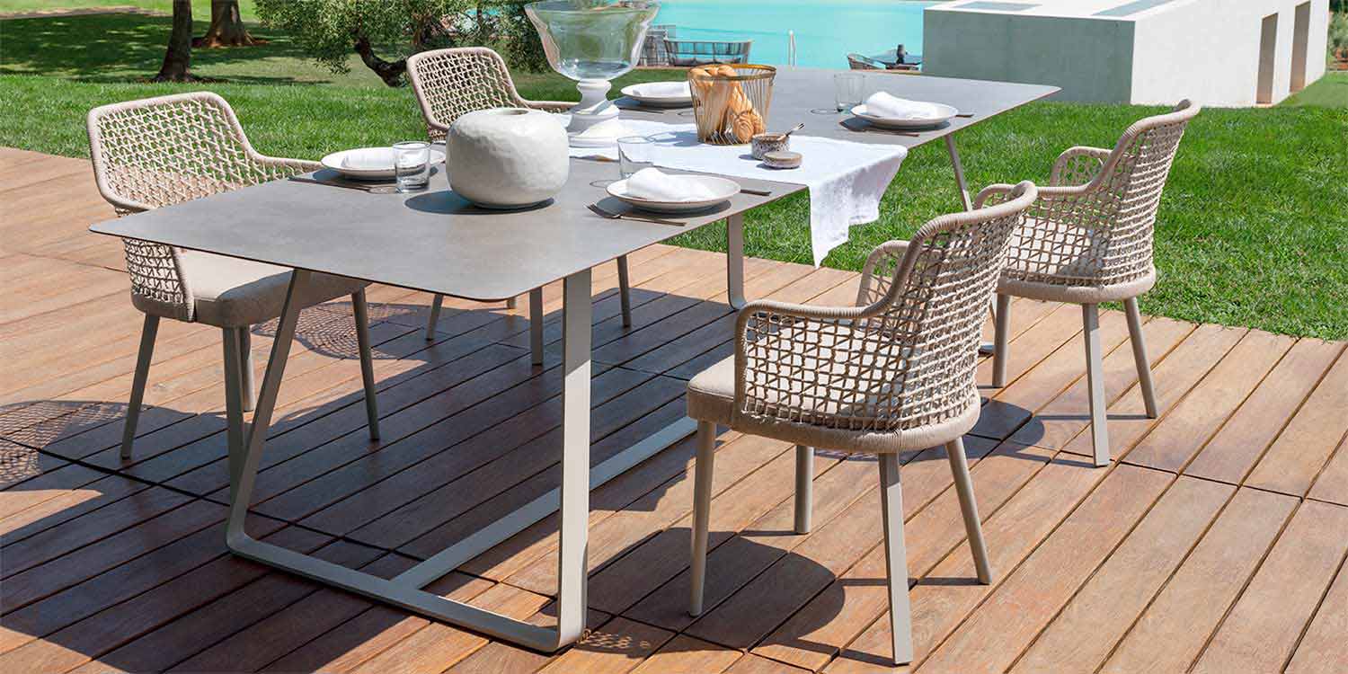 Vedligeholdelse: Samlingen støtter sollys og regn. Vi anbefaler regelmæssig vedligeholdelse og særlig opmærksomhed på beskyttelsen af varerne i tilfælde af ugunstige vejrforhold (is, hagl, temperaturændringer, fugtighed, vedvarende, brændende varme eller ekstrem kulde). Varigheden og integriteten af disse varer afhænger af den pleje, som de opretholdes. For aluminium og stålprodukter, selvom det er beskyttet af behandlinger og færdiggørelser egnet til udendørs brug, er det vigtigt at forhindre vand i at stagnere inde i selve produktet. Faktisk har alle genstande tekniske huller, der er nødvendige for anvendelse af beskyttende behandlinger og finish. Indførelsen af vand i disse huller og dens stagnation kan forårsage rust inde i rørene.