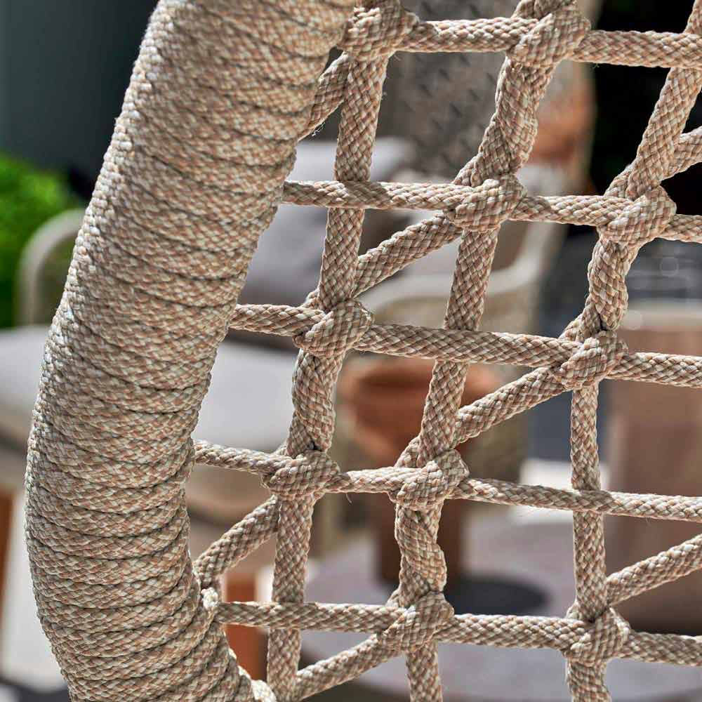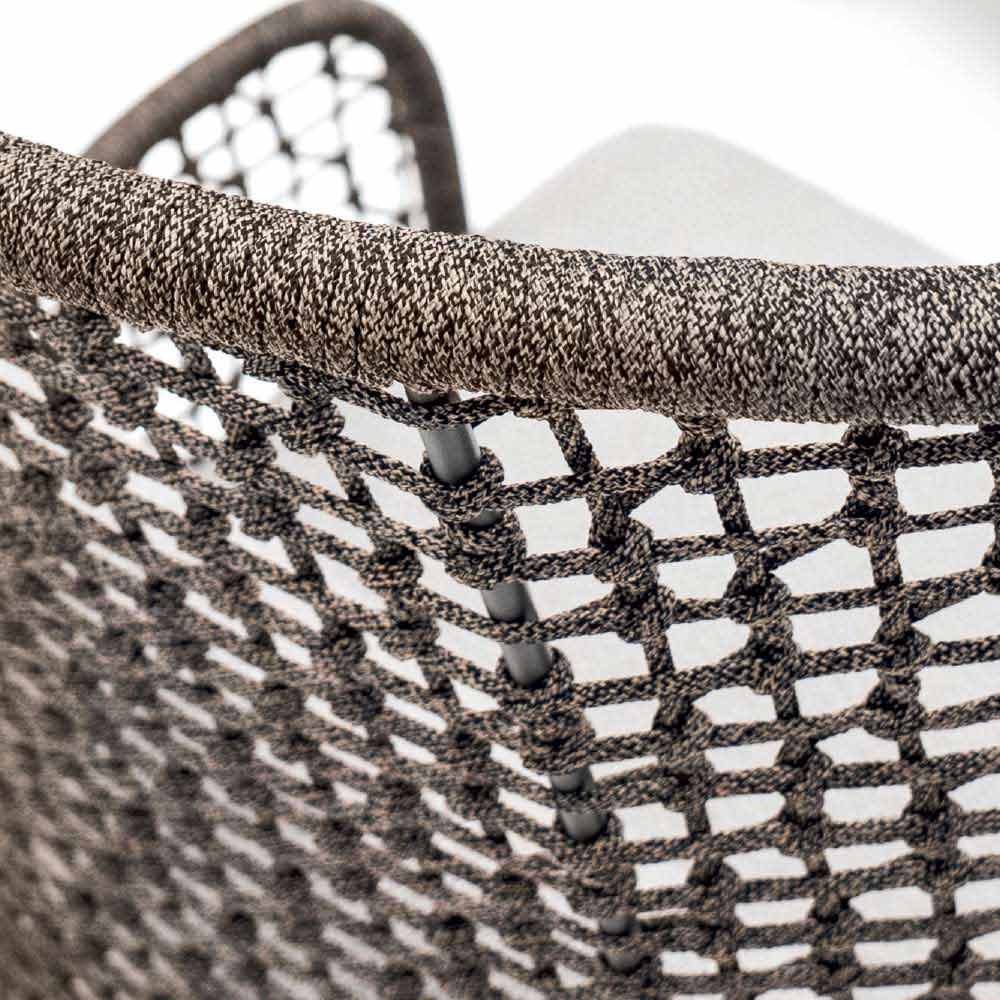 Emma er en fantastisk havestol med en struktur i håndvævet syntetisk fiber med en pulverlakeret aluminiumsramme, der vælges i to farver: beige og mørkegrå.