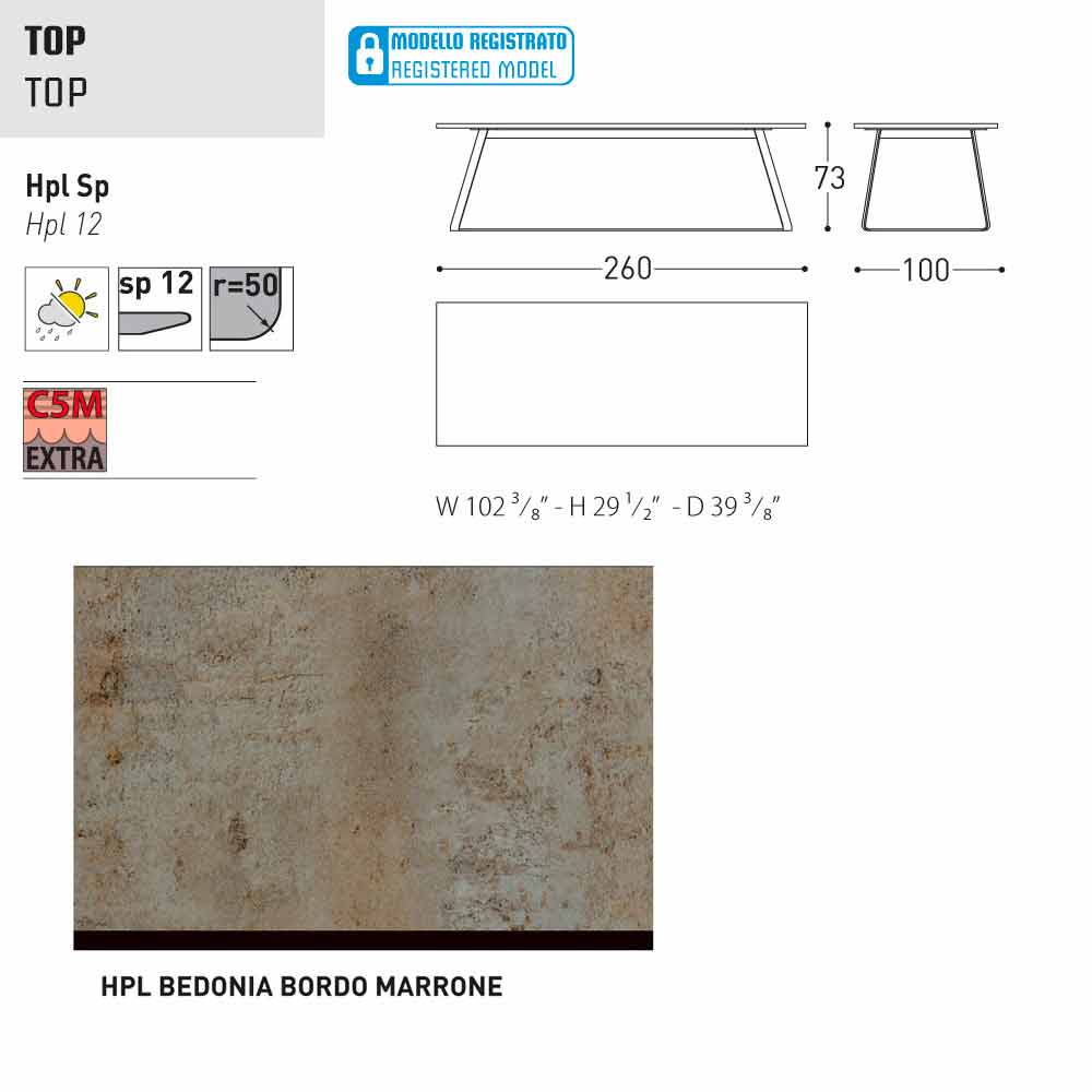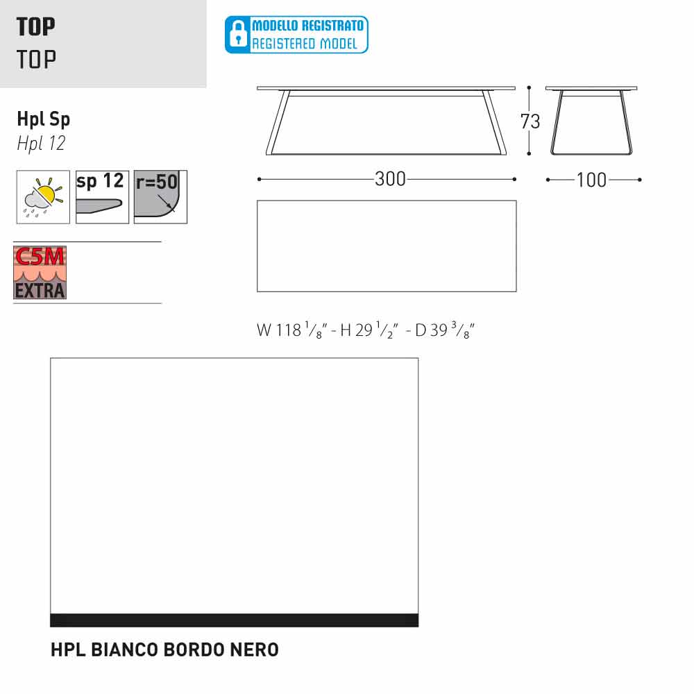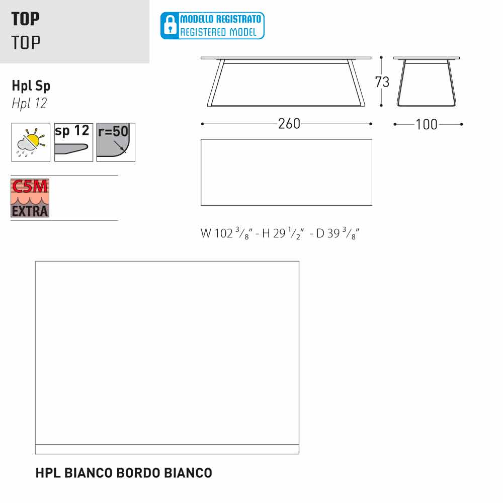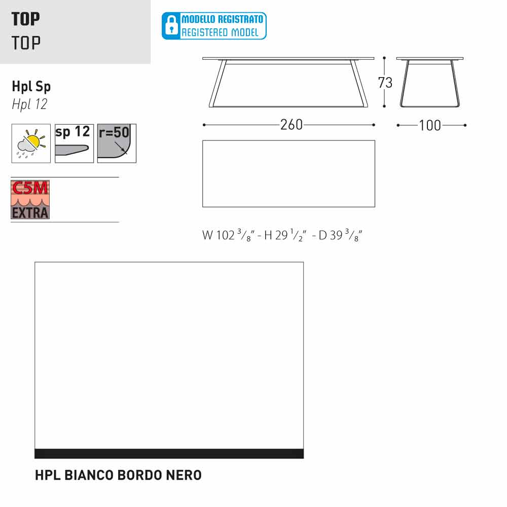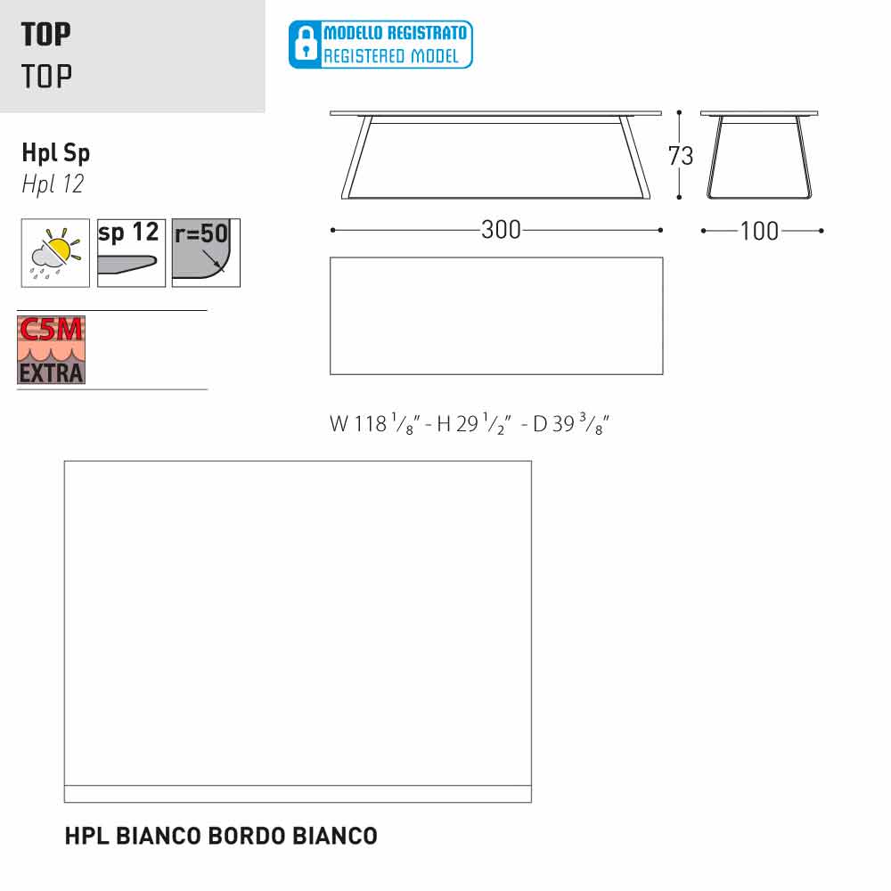 HPL Features: højtryk laminater. De består af flere lag af papir (70%), imprægneret med termohærdende harpikser (30%) og komprimerede gennem den kombinerede virkning af varme (ca. 150 grader) og højt tryk (større end 7 MPa) i ca. 45-50 minutter. Resultatet er et stabilt, ikke-reaktivt, ikke-porøst og høj densitet, med fysiske og kemiske karakteristika af høj mekanisk styrke (kontrolleret termisk udflugt +80, -40 grader, på begrænset tid mindre end 30 sekunder ved ekstreme temperaturer), eksponering for lys og eksponering for ændringer i temperatur, selv i marine miljøer.