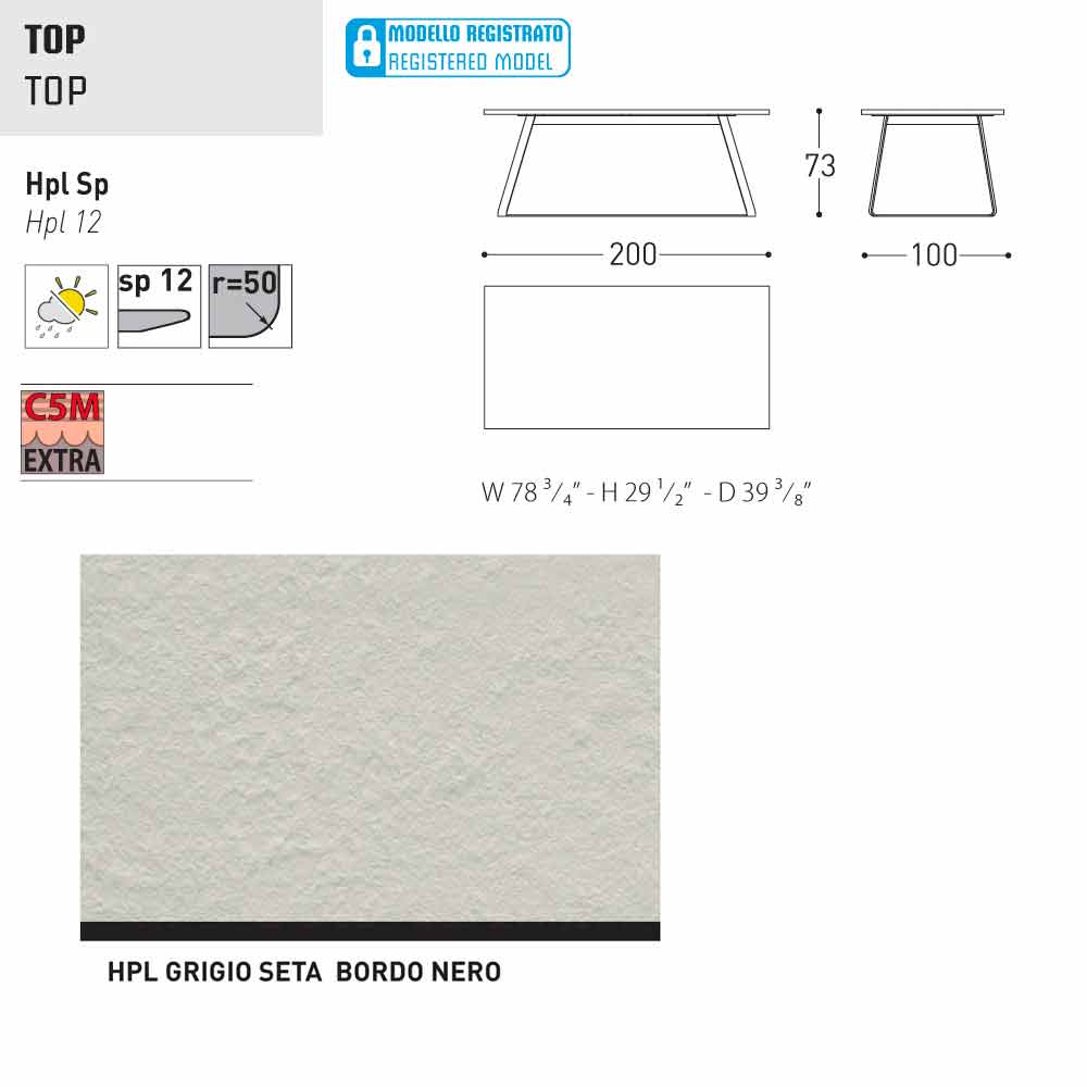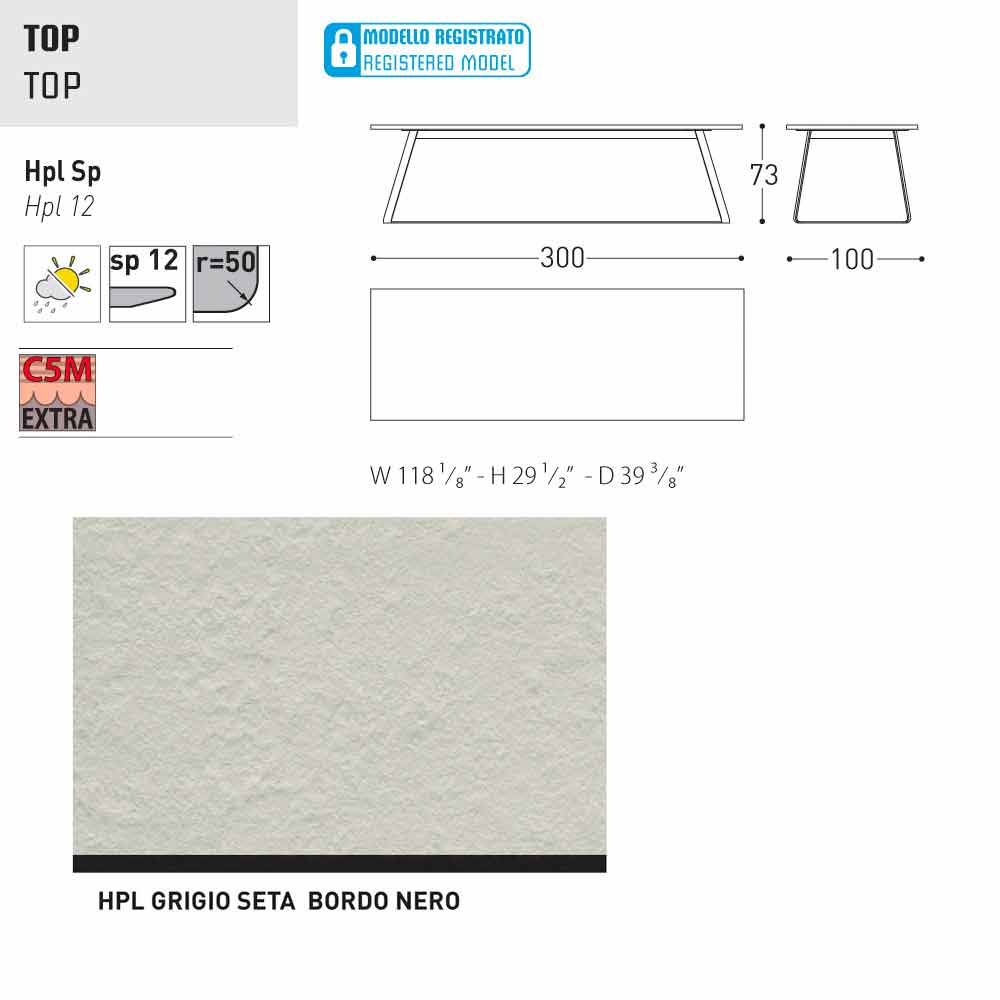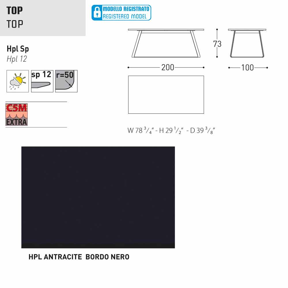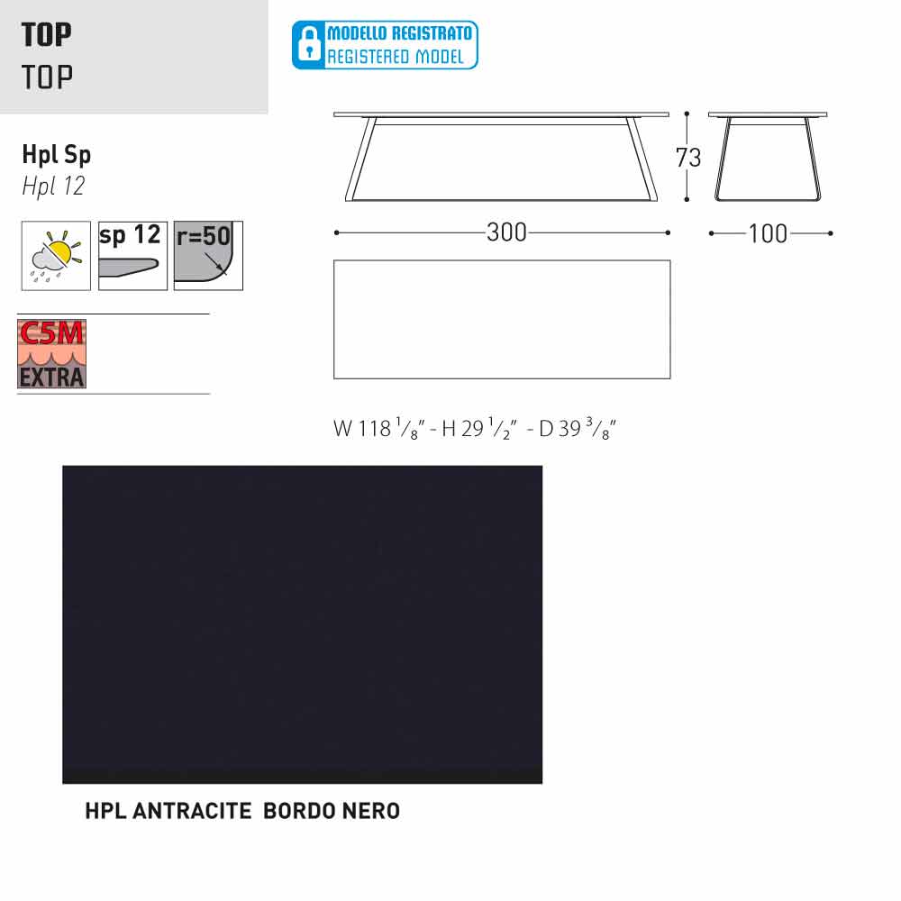 trukket stål bundplade i kataforese og pulverlakering. HPL top, tykkelse 12 mm. Tabellen for ekstern Kolonaki er et registreret model og tilbydes i forskellige finish og størrelser. Med sin alsidige design kan bruges på terrassen eller i haven samt i opholdsrummet.