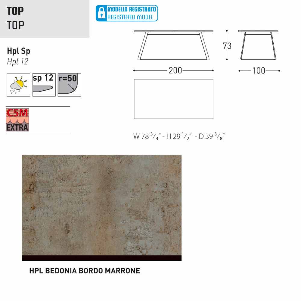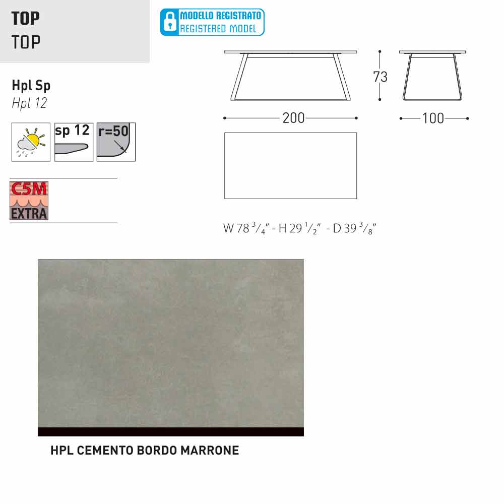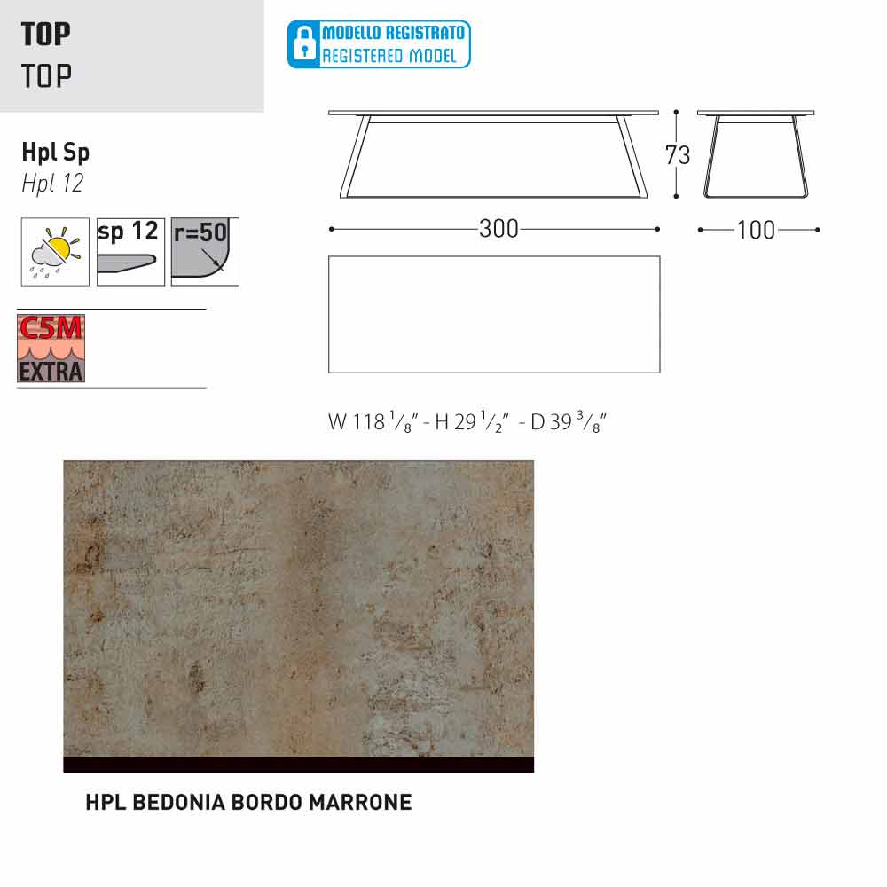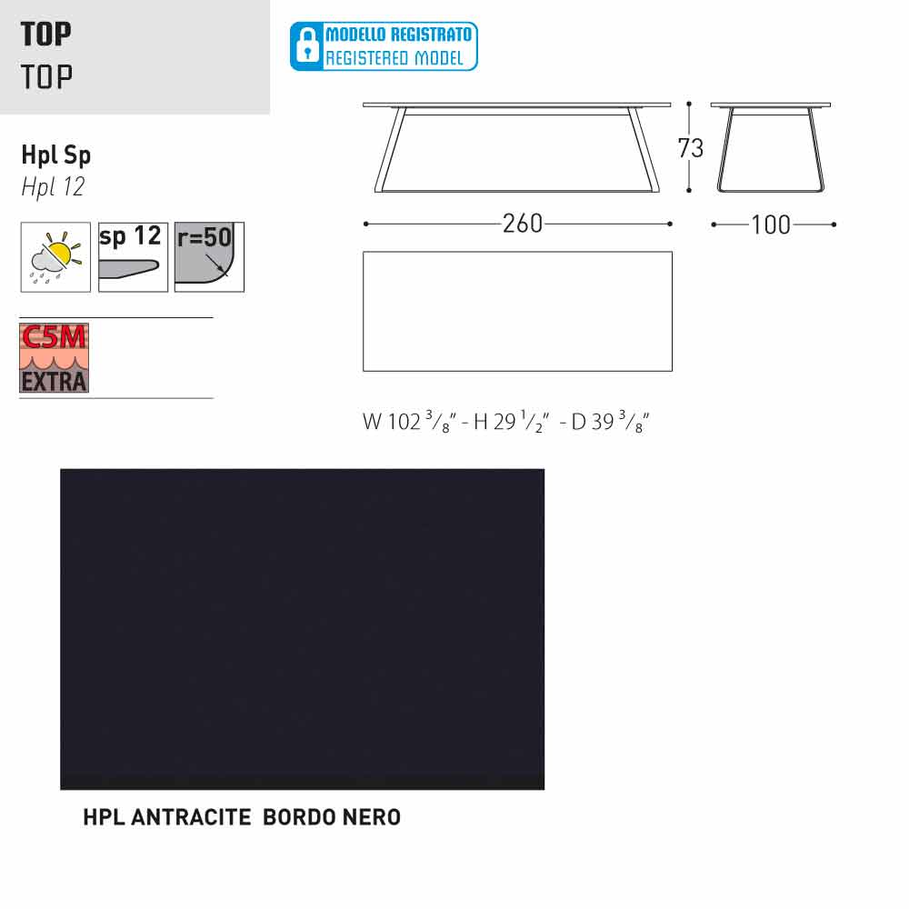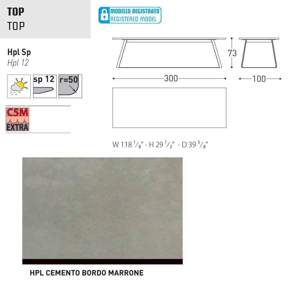 trukket stål bundplade i kataforese og pulverlakering. HPL top, tykkelse 12 mm. Tabellen for ekstern Kolonaki er et registreret model og tilbydes i forskellige finish og størrelser. Med sin alsidige design kan bruges på terrassen eller i haven samt i opholdsrummet.