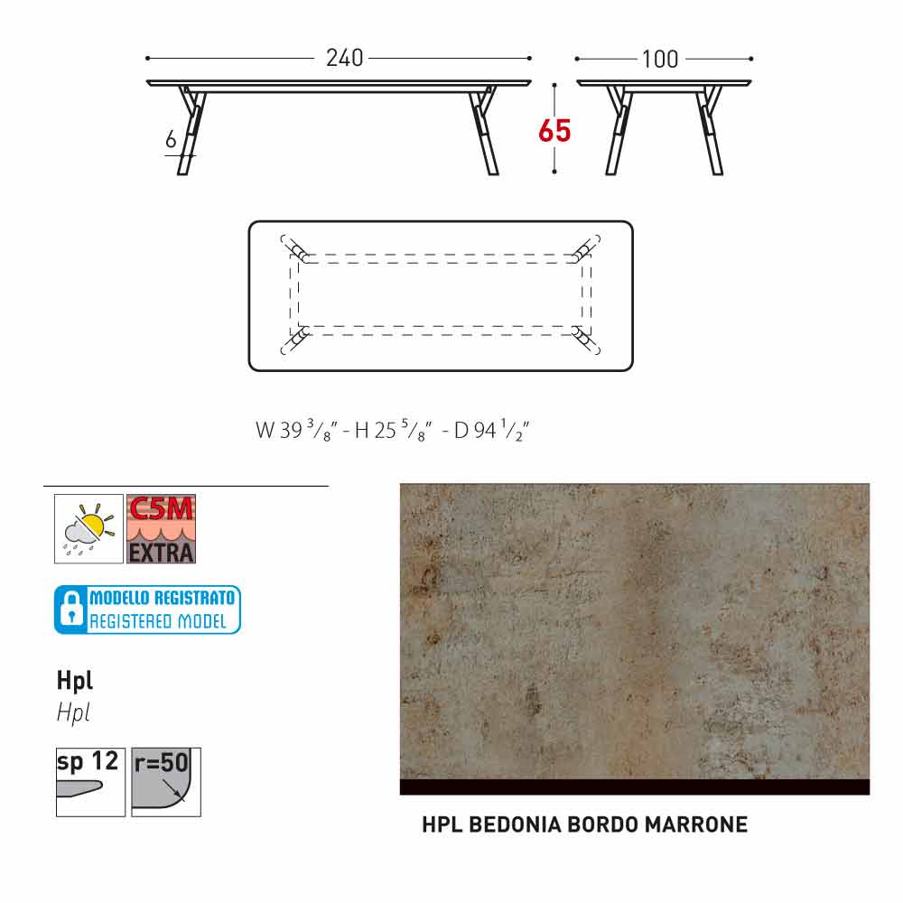 HPL Features: højtryk laminater. De består af flere lag af papir (70%), imprægneret med termohærdende harpikser (30%) og komprimerede gennem den kombinerede virkning af varme (ca. 150 grader) og højt tryk (større end 7 MPa) i ca. 45-50 minutter. Resultatet er et stabilt, ikke-reaktivt, ikke-porøst og høj densitet, med fysiske og kemiske karakteristika af høj mekanisk styrke (kontrolleret termisk udflugt +80, -40 grader, på begrænset tid mindre end 30 sekunder ved ekstreme temperaturer), eksponering for lys og eksponering for ændringer i temperatur, selv i marine miljøer.