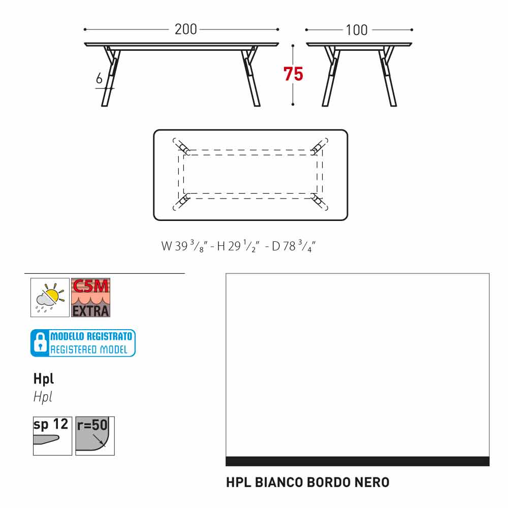 HPL Features: højtryk laminater. De består af flere lag af papir (70%), imprægneret med termohærdende harpikser (30%) og komprimerede gennem den kombinerede virkning af varme (ca. 150 grader) og højt tryk (større end 7 MPa) i ca. 45-50 minutter. Resultatet er et stabilt, ikke-reaktivt, ikke-porøst og høj densitet, med fysiske og kemiske karakteristika af høj mekanisk styrke (kontrolleret termisk udflugt +80, -40 grader, på begrænset tid mindre end 30 sekunder ved ekstreme temperaturer), eksponering for lys og eksponering for ændringer i temperatur, selv i marine miljøer.