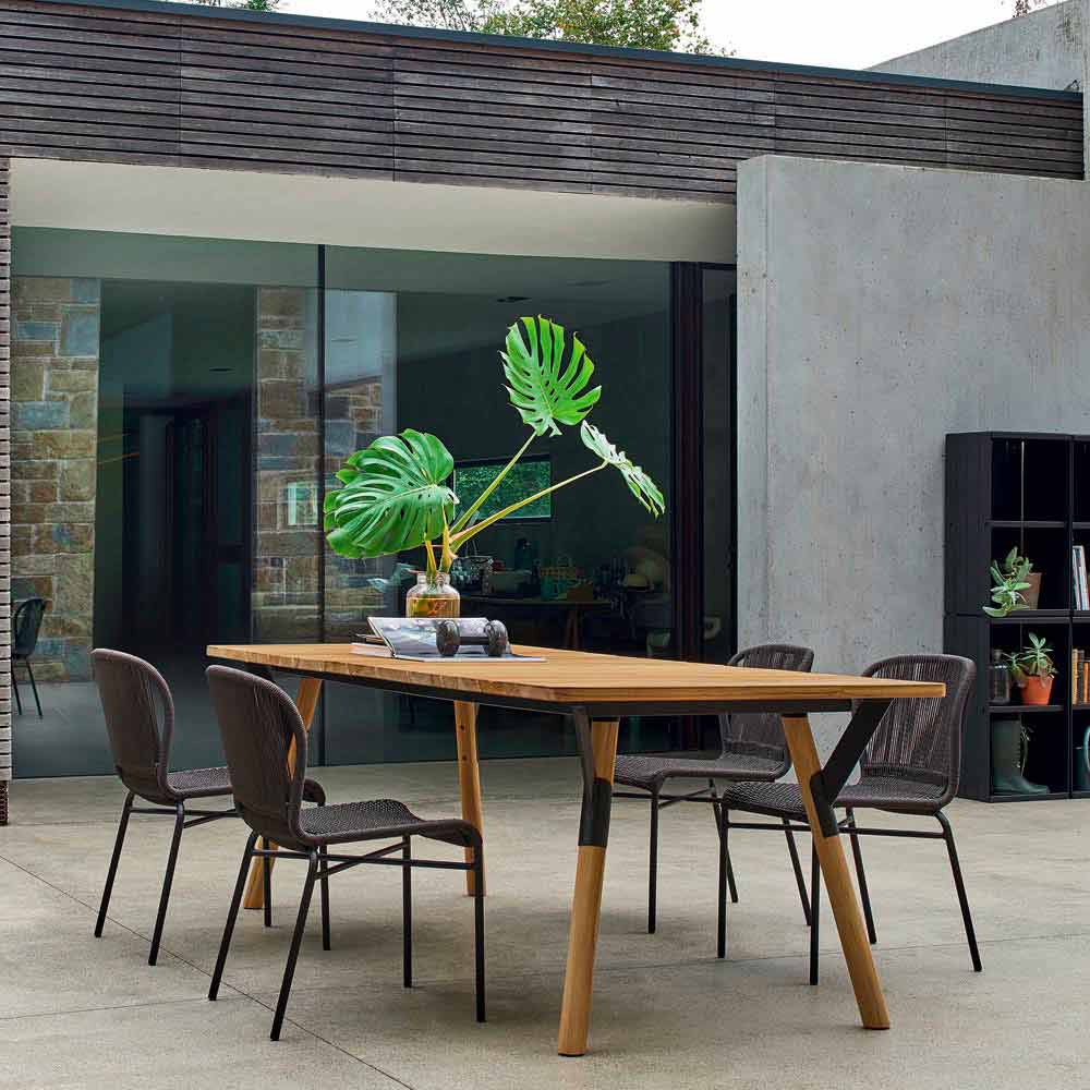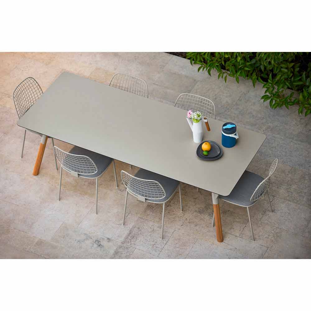 Link er et bord med et moderne design med stel i rustfrit stål og malet teak træ ben. Planen er tilgængelig i HPL (tykkelse 12 mm) eller teak træ (tykkelse 30 mm). Med sin alsidige design, kan den bruges som udendørs bord for at tilvejebringe indendørs miljøer. forskellige finish er tilgængelige med til at tilpasse struktur og bordpladen.