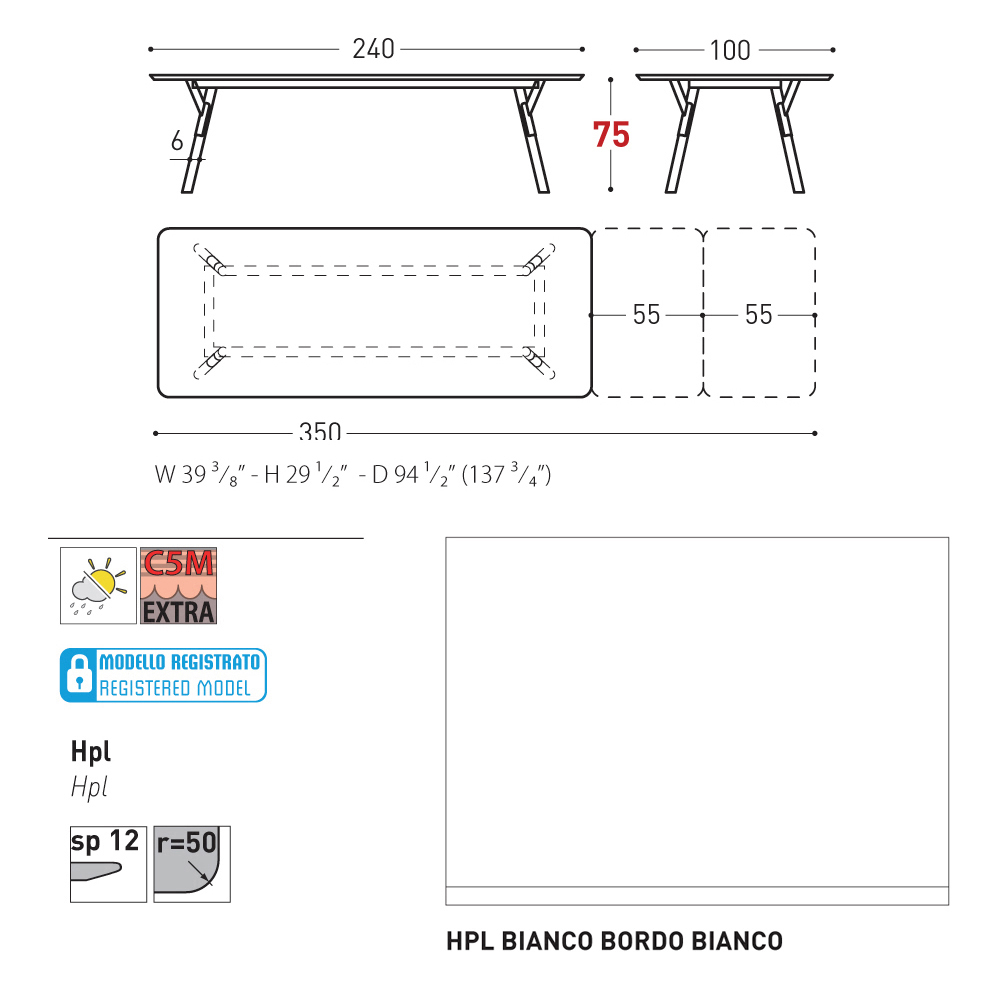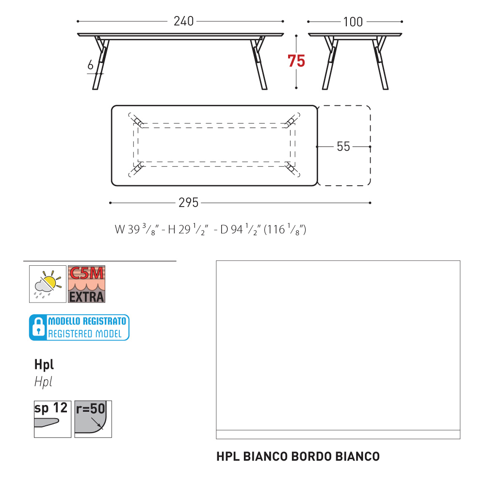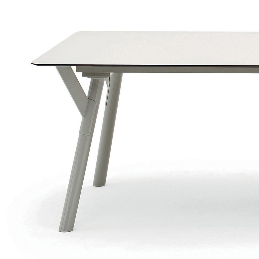 Link er et moderne design bord med struktur (beslag + ben) i malet rustfrit stål. Toppen fås i HPL (tykkelse 12 mm) eller i teaktræ (tykkelse 30 mm). Takket være dets alsidige design kan det bruges både som et udtrækbart udendørsbord og til at møblere indendørs miljøer. Forskellige finish er tilgængelige til at tilpasse struktur, ben og bordplade.