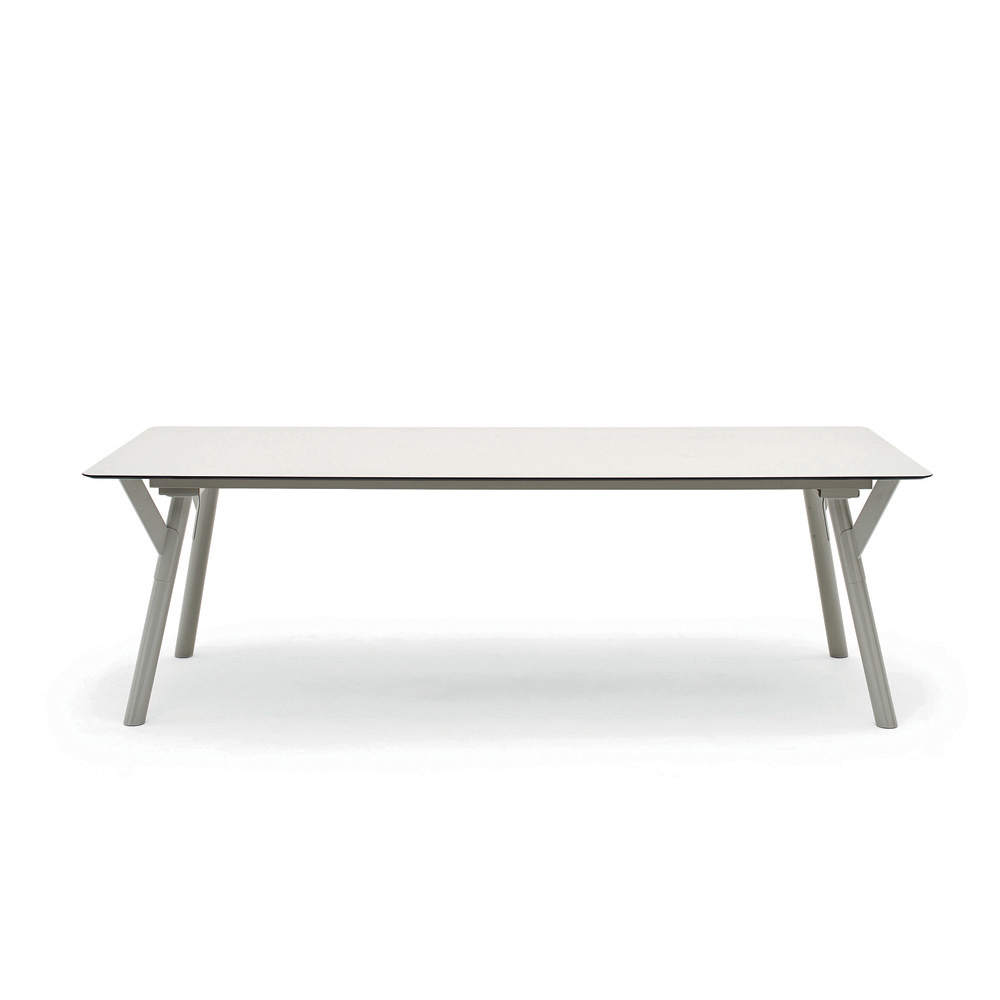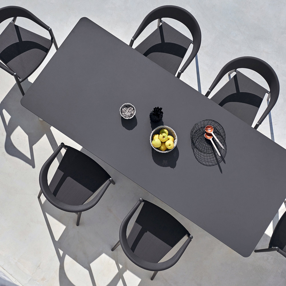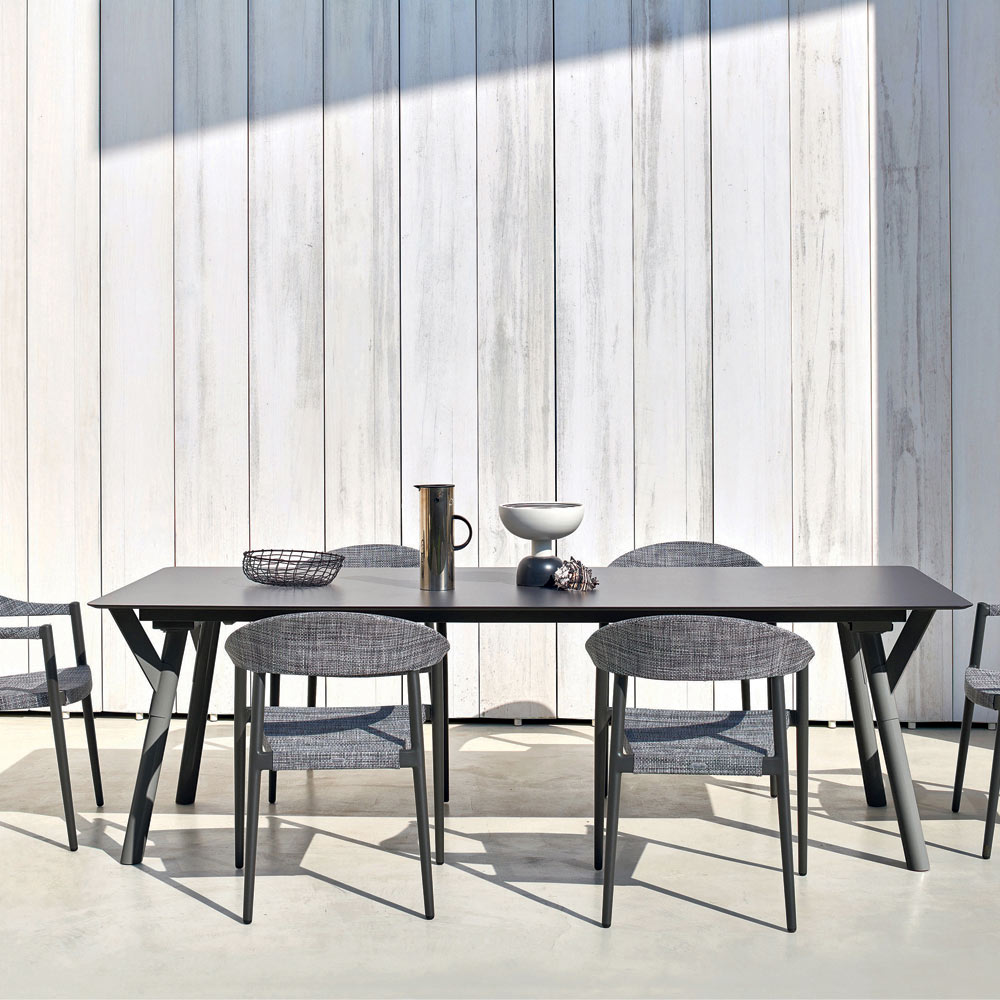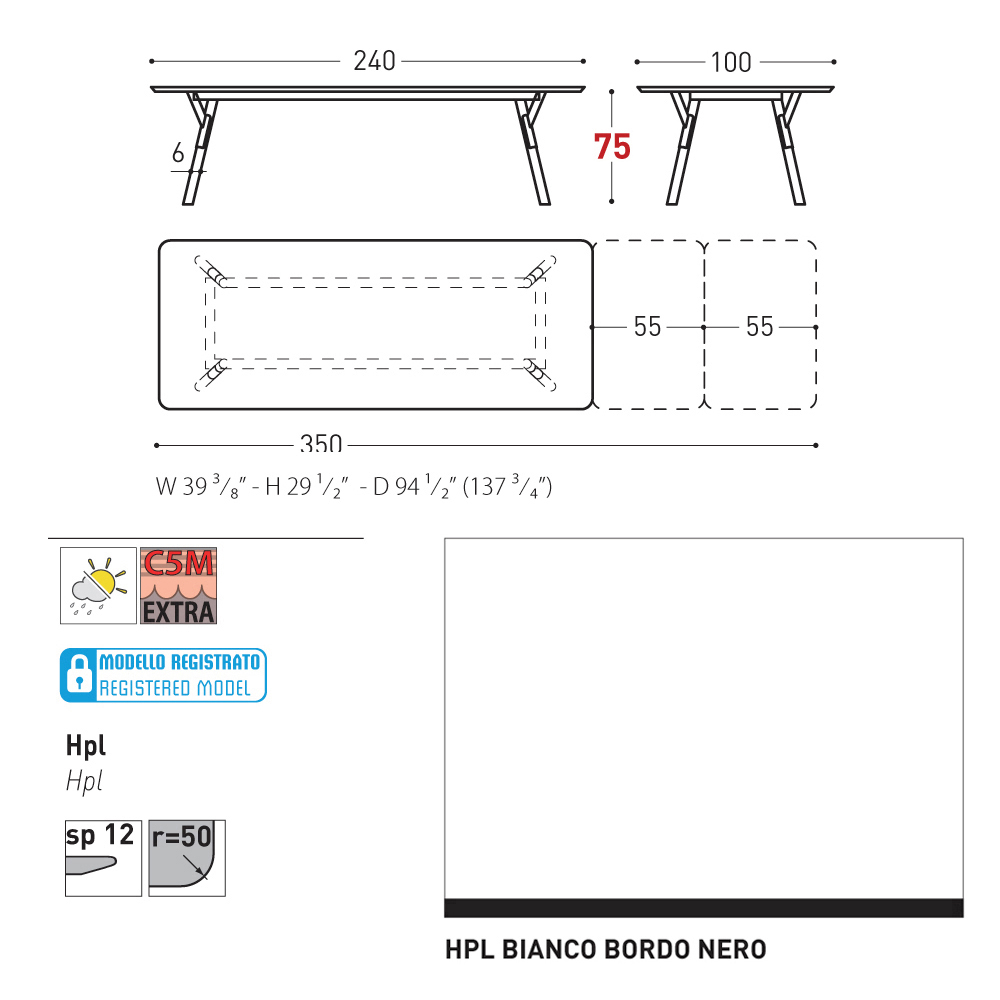 Link er et moderne design bord med struktur (beslag + ben) i malet rustfrit stål. Toppen fås i HPL (tykkelse 12 mm) eller i teaktræ (tykkelse 30 mm). Takket være dets alsidige design kan det bruges både som et udtrækbart udendørsbord og til at møblere indendørs miljøer. Forskellige finish er tilgængelige til at tilpasse struktur, ben og bordplade.