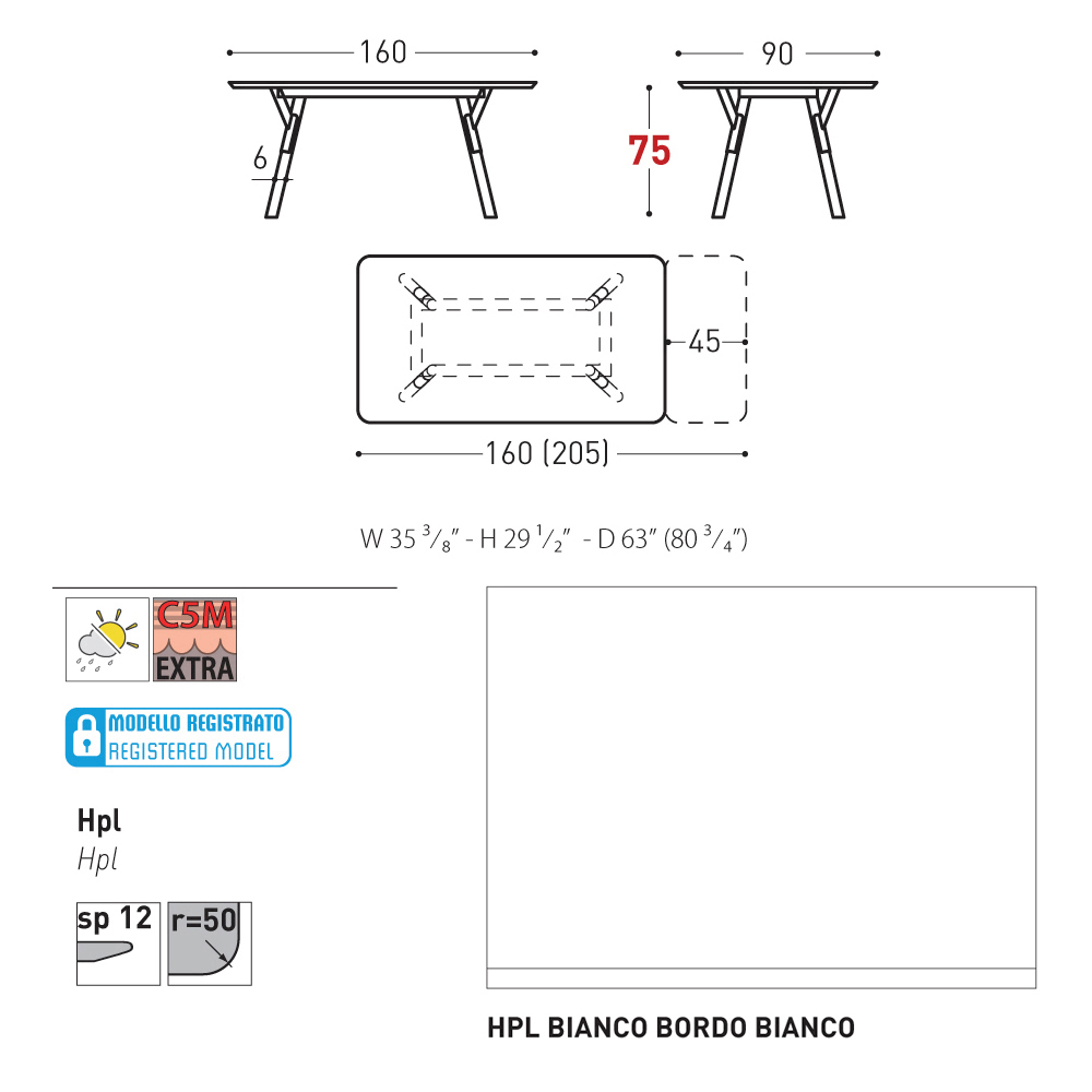 90x160/205x H 73,2 cm - 1 forlængelse på 45 cm