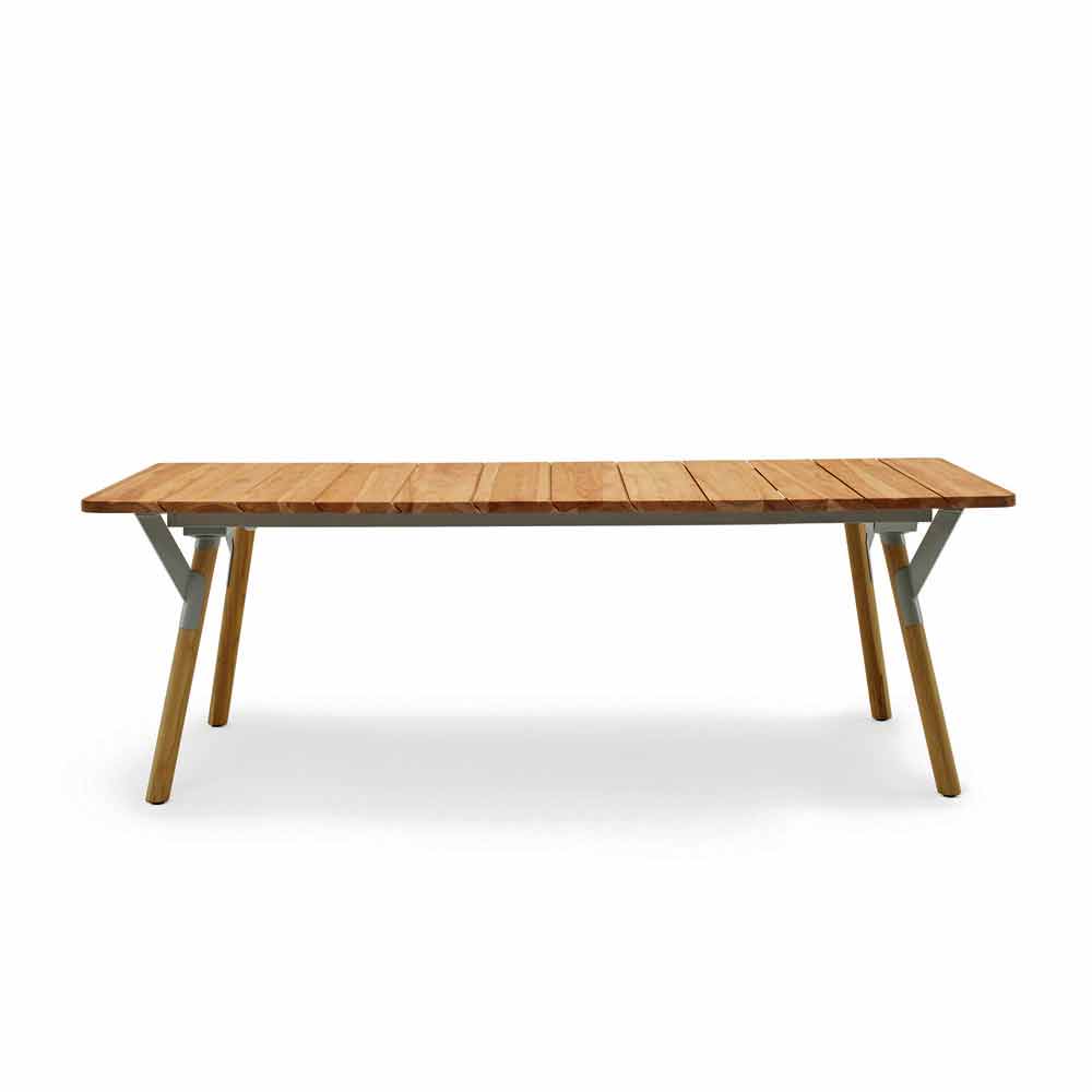 Link er en tabel med moderne design og struktur (frame + beslag) og stål gulv og teaktræ ben (30 mm tyk). Med sin alsidige design, kan den bruges som udendørs bord for at tilvejebringe indendørs miljøer.