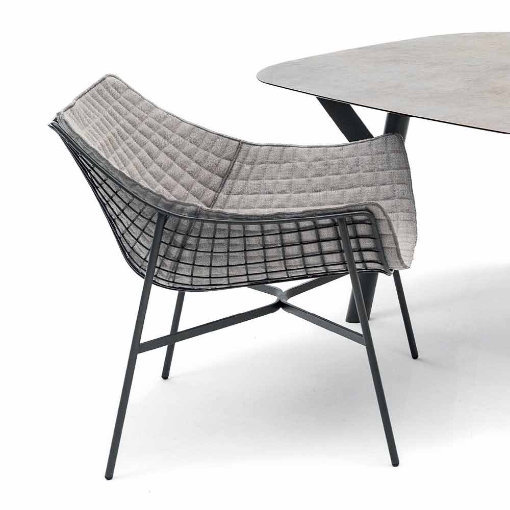 Summer Set er en fabelagtig udendørs lænestol, der er karakteriseret ved en bærende struktur i pulverlakeret stål med et udvalg af hvide eller sorte farver; sæde og rygpude i quiltet stof.