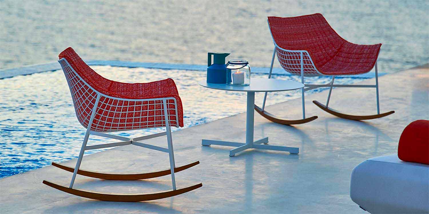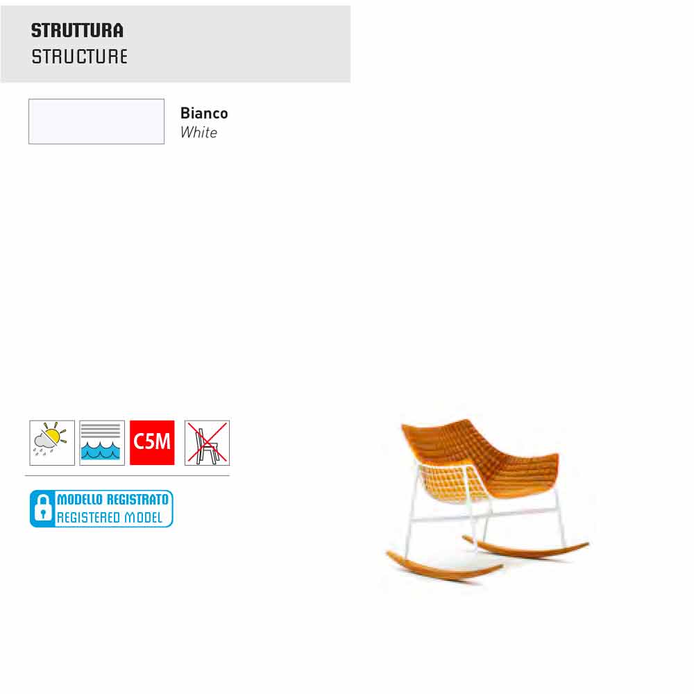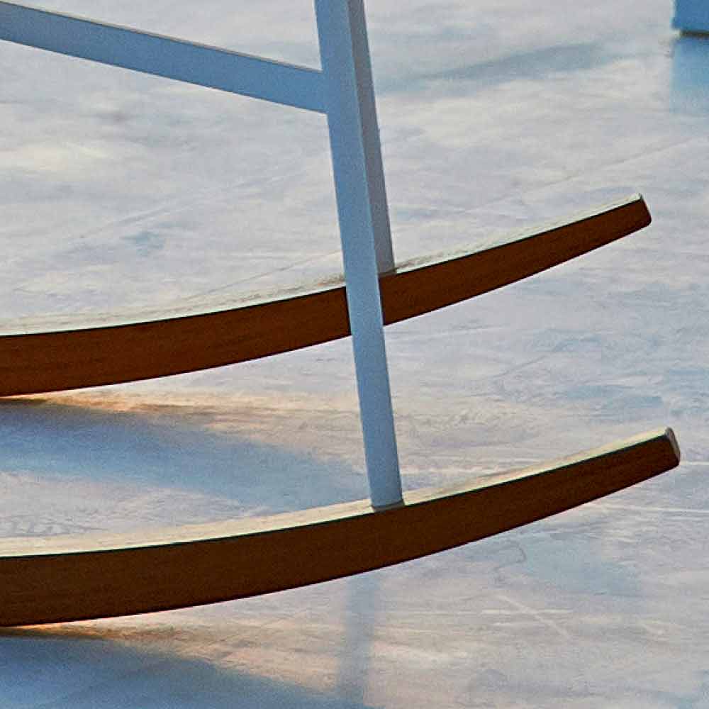 Summer Set er en dejlig udendørs rockende lounge stol, der er karakteriseret ved en bærende struktur i hvidt pulverlakeret stål og glider i naturligt iroko massivt træ.