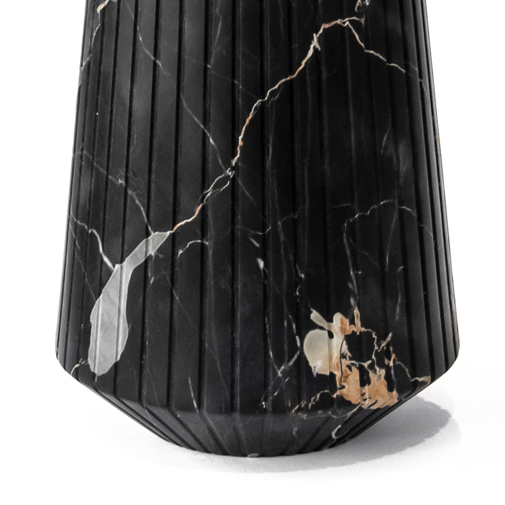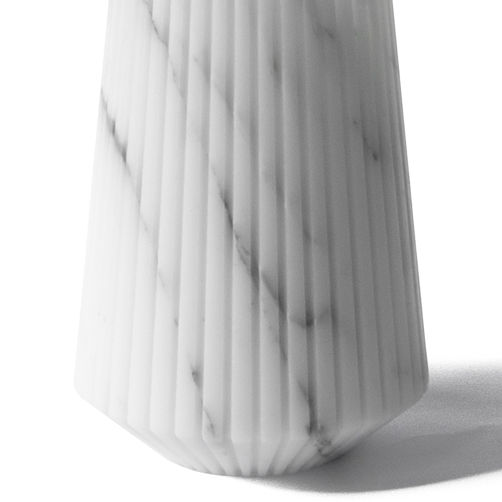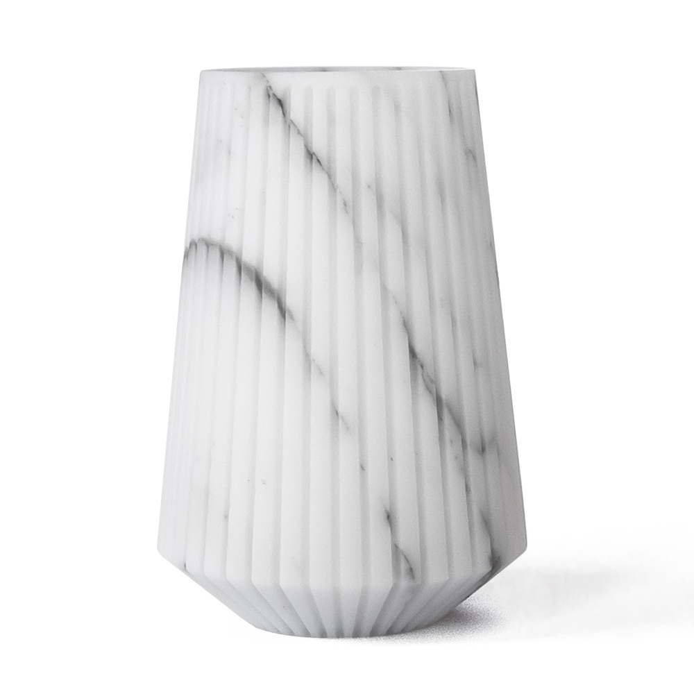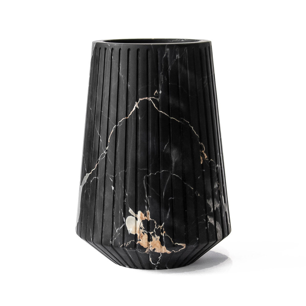 Medium dekorativ vase i hvid eller sort stribet marmor lavet i Italien.